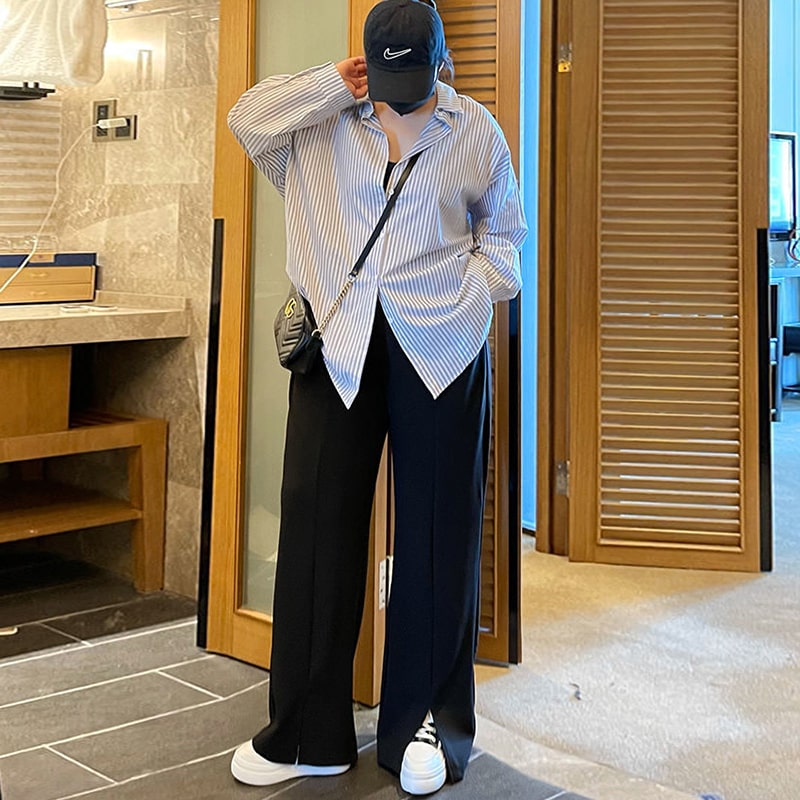 Pantalones casuales de pierna ancha con abertura lateral de color sólido para mujer, tallas L-6XL