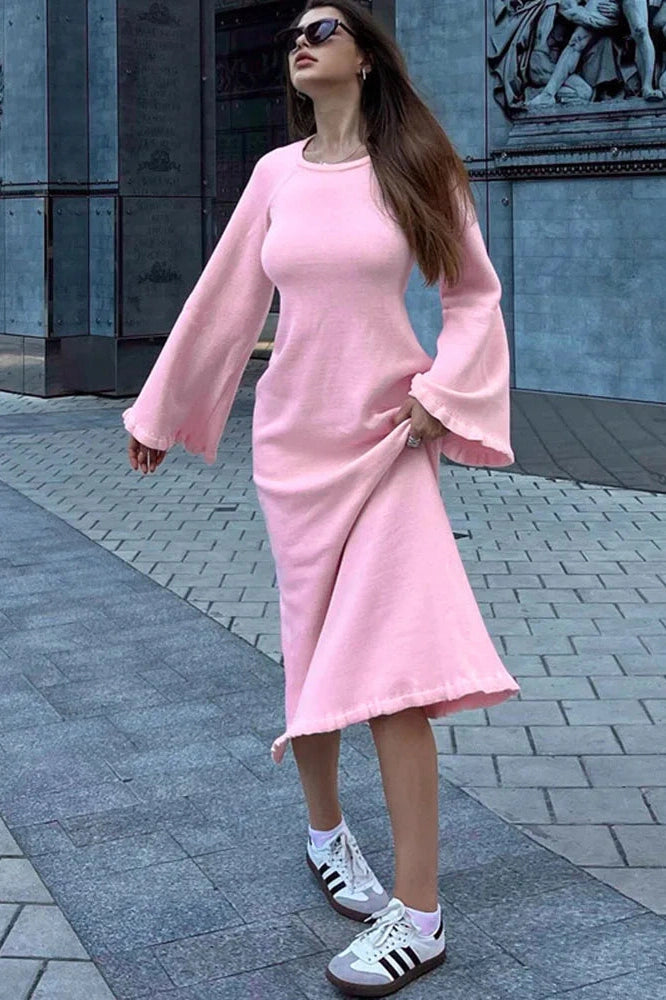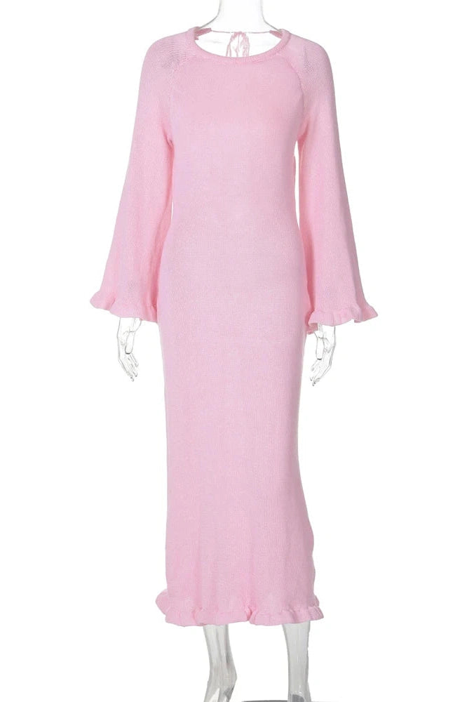 This stylish mini dress combines a loose fit with a chic lace-up and backless design. The long sleeves add a touch of elegance for a sophisticated yet relaxed look.