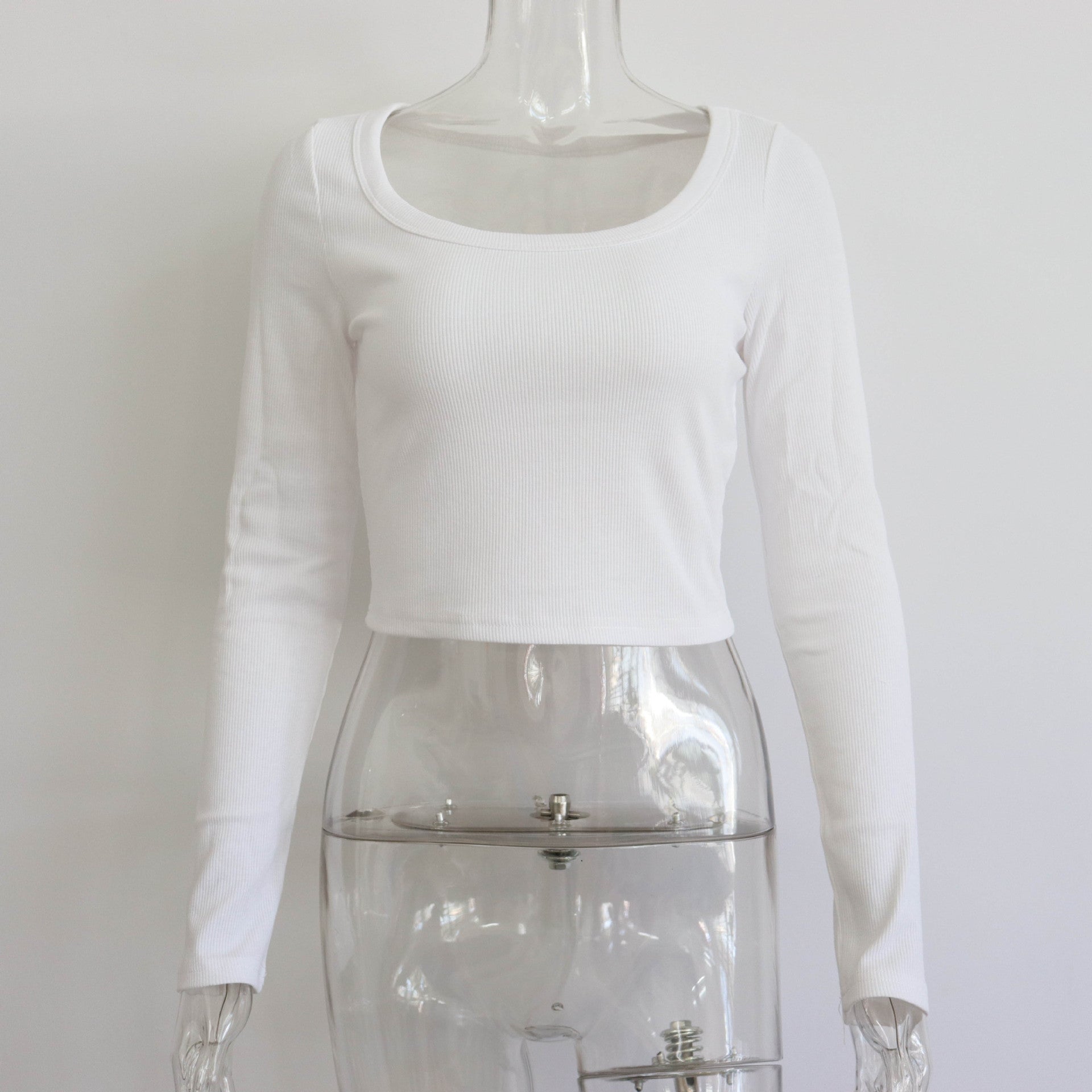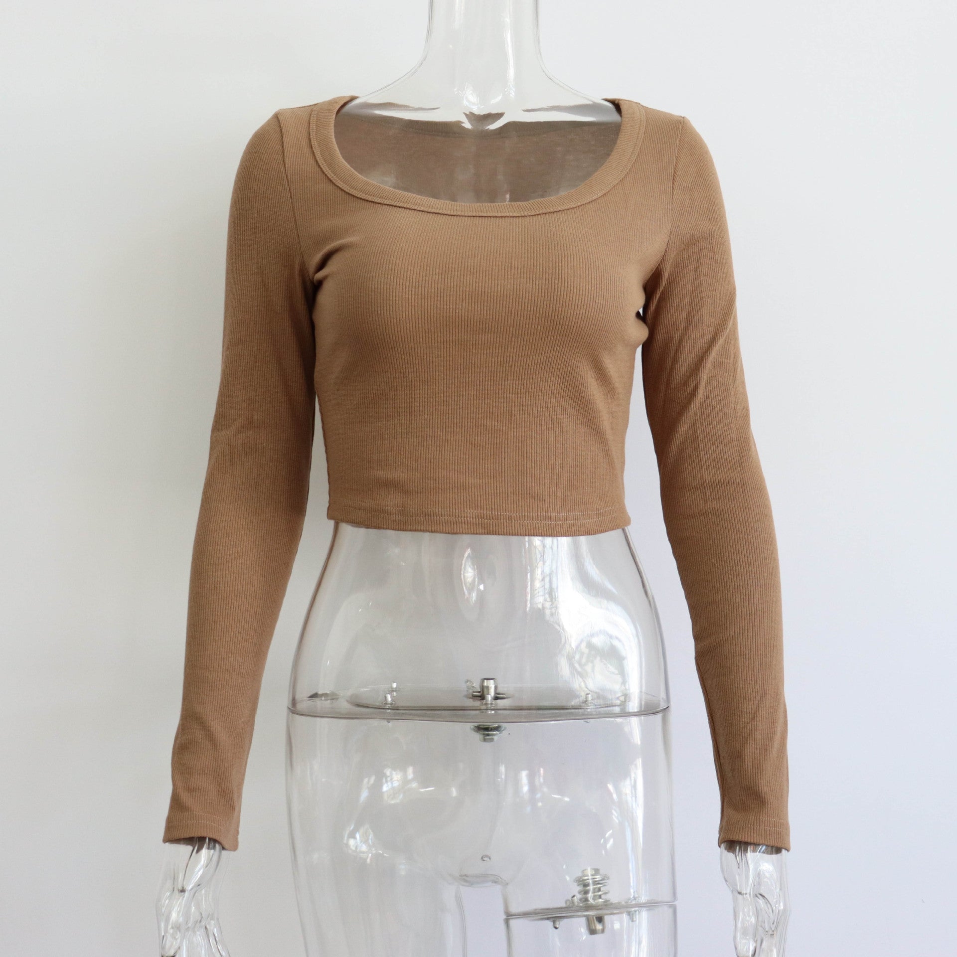 Large round Neck Long Sleeves Rib Short Top Women Casual Sexy Autumn Winter Knitting Bottoming Shirt Street Slim Top
