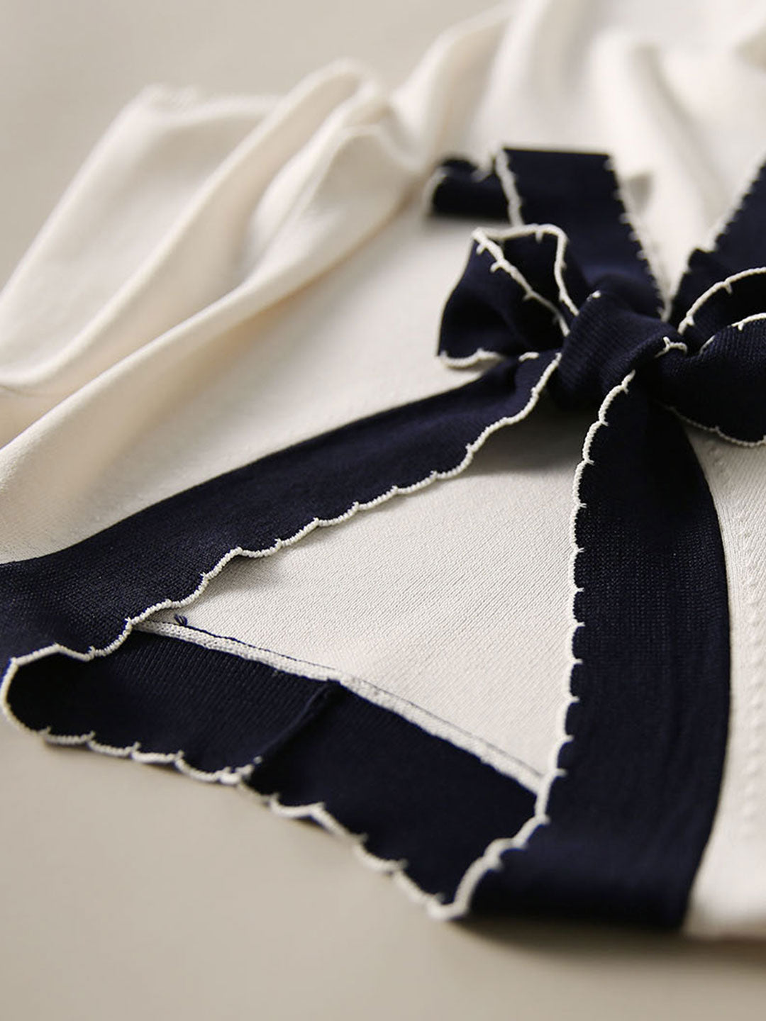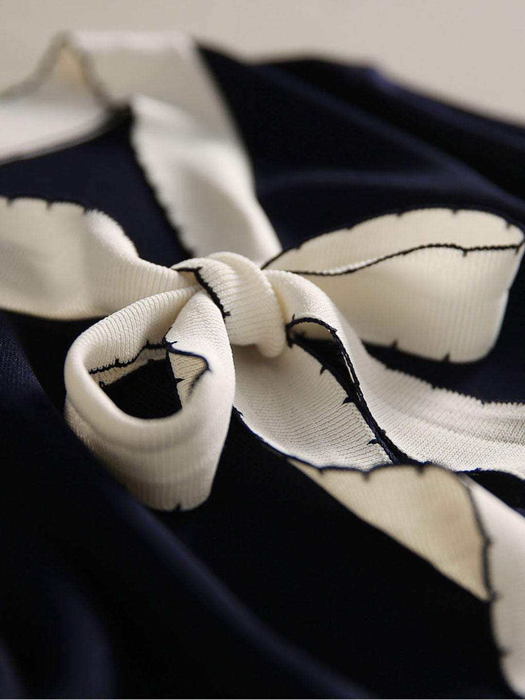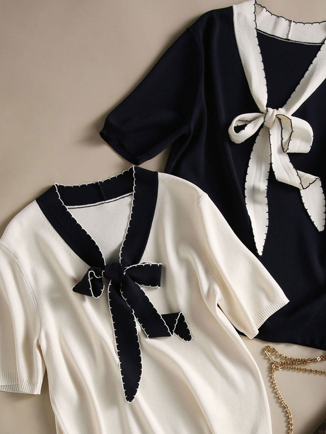 Layla Classic Loose Bow Knitted T-shirt-Black