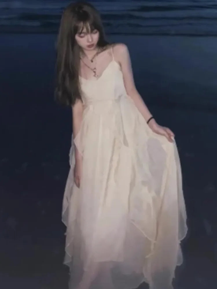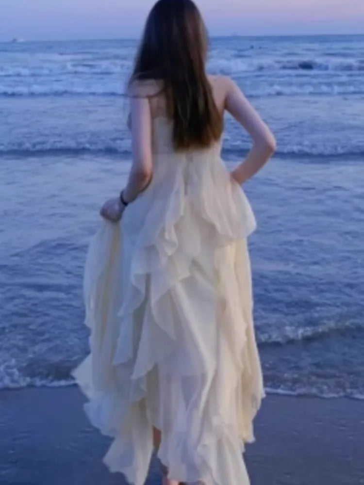 New Spaghetti Strap Elegant Dresses for Women Summer Ruffles A-line Holiday Beach Style Casual Party Dress Y2K Vestidos Mujer