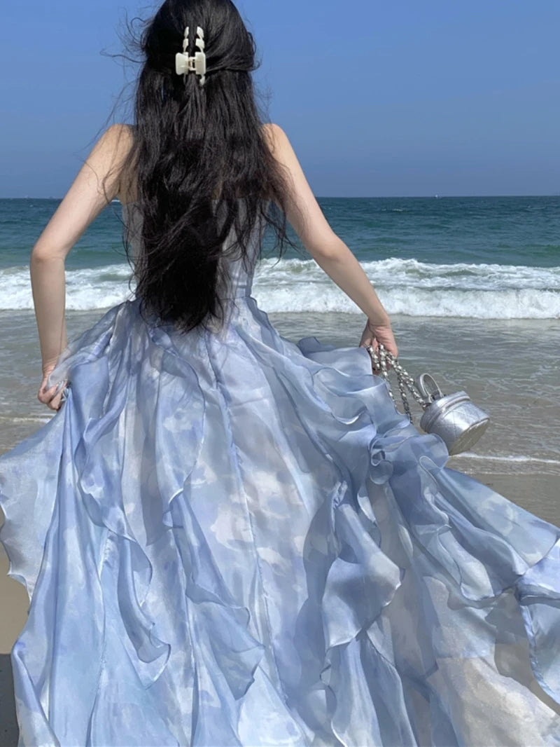 New Summer Long Dresses for Women Spaghetti Strap Korean Chic A-Line Ruffles Beach Style Party Dress One Piece Vestido Mujer