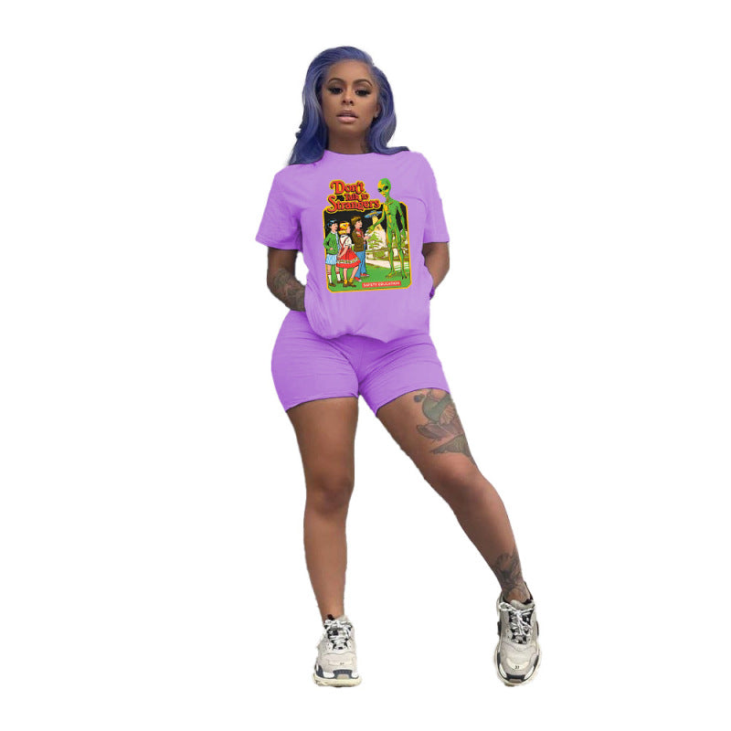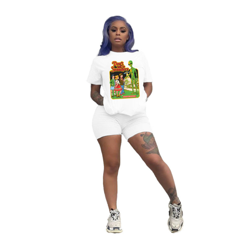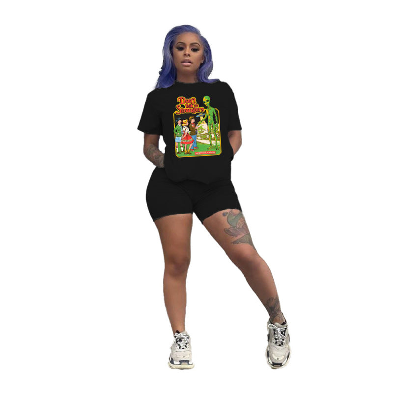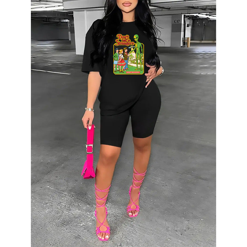 Conjunto deportivo de dos piezas para mujer, talla grande, informal, deportivo, con estampado gráfico, camiseta y pantalones cortos