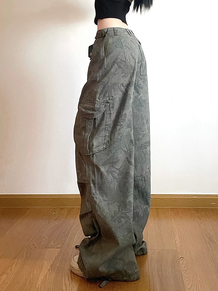Print Camouflage Cargo Jeans Women Pockets Mid Waist Vintage Preppy Hippie Straight Denim Pants