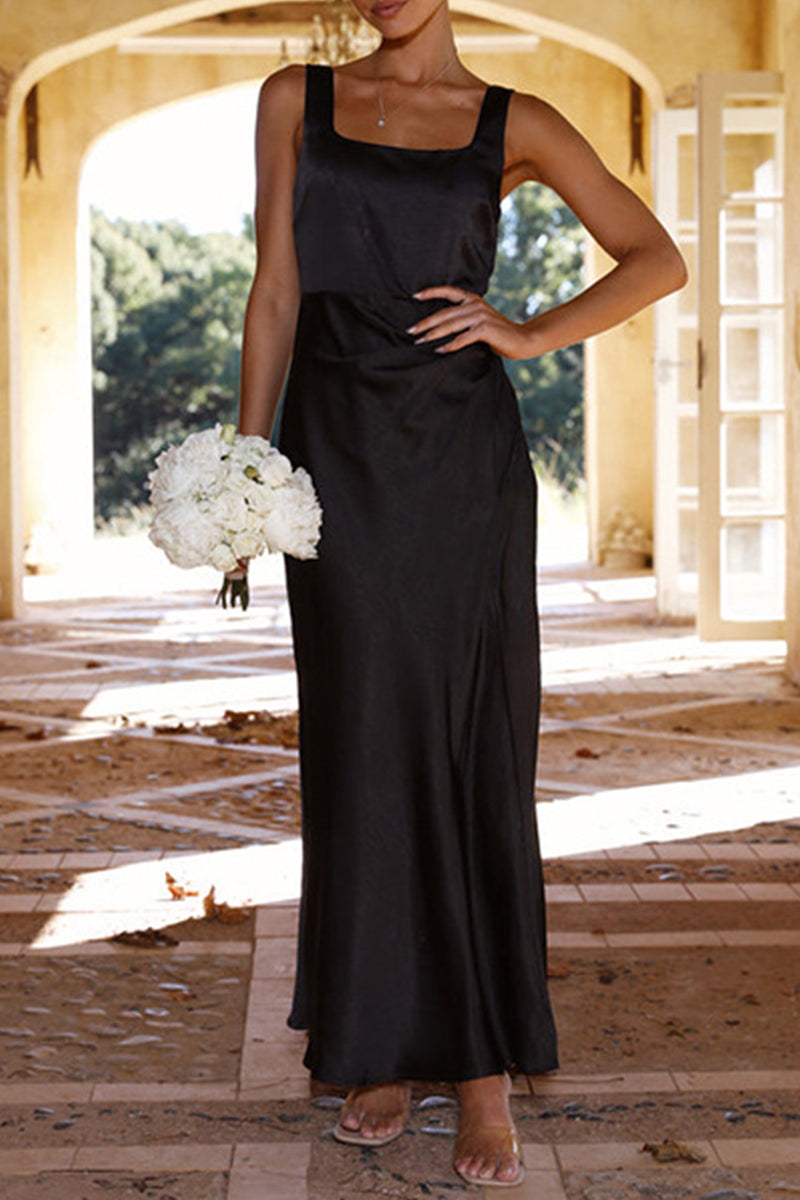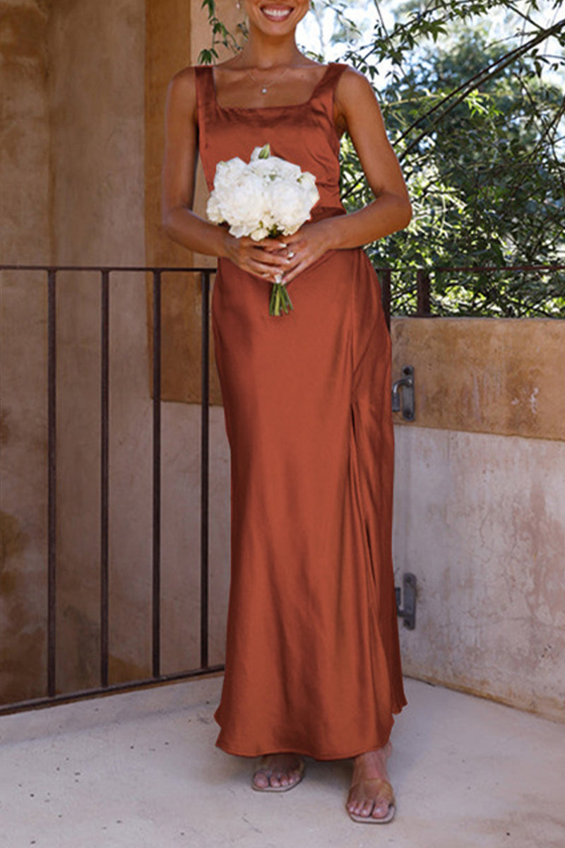 Vestidos de celebridades sexys con falda cruzada, cuello cuadrado, abertura y espalda descubierta (4 colores)