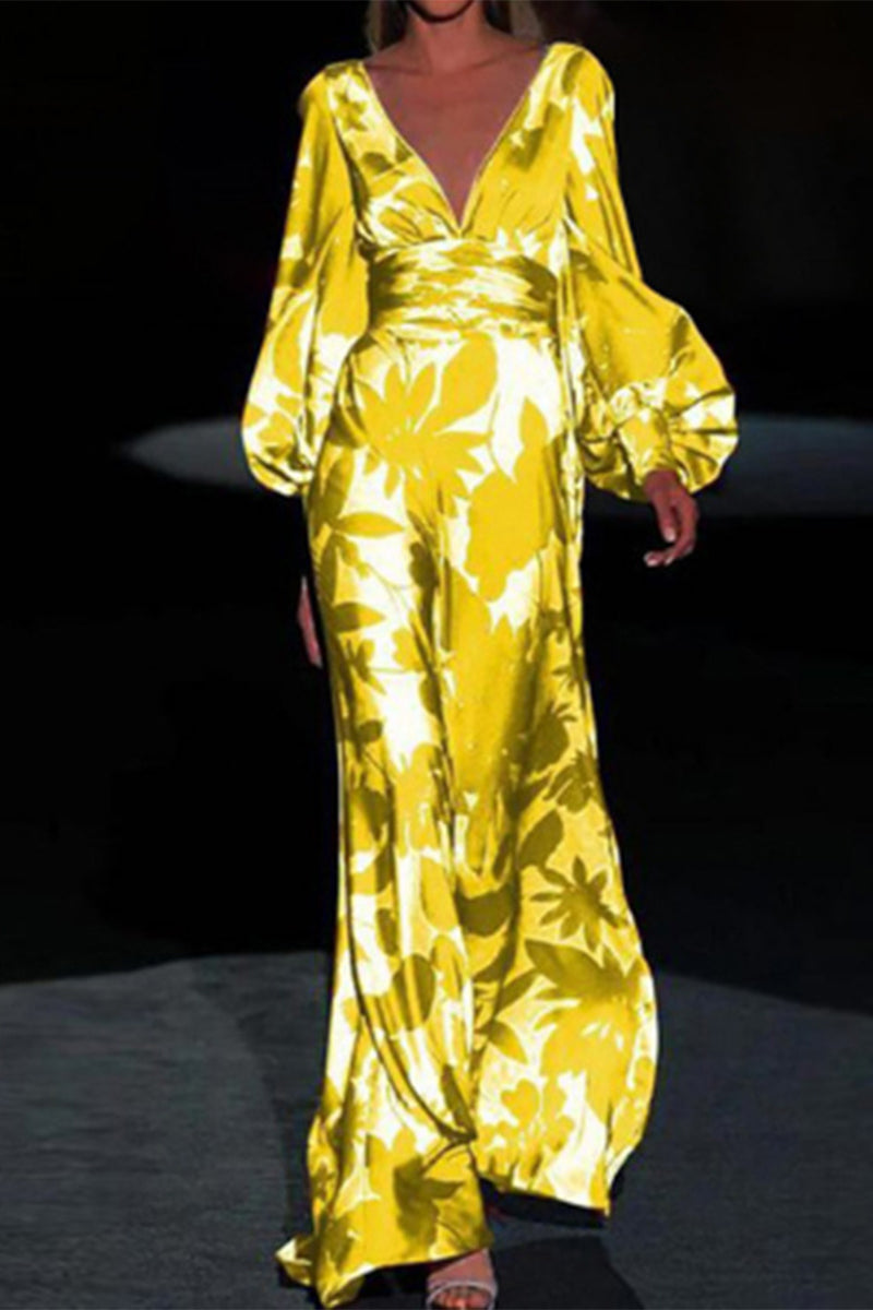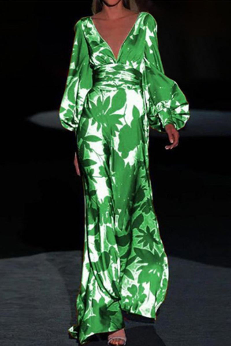 Sexy Elegant Print Frenulum V Neck Evening Dress Dresses(4 Colors)