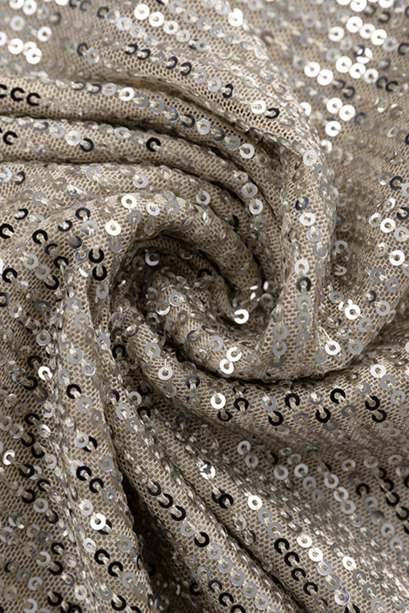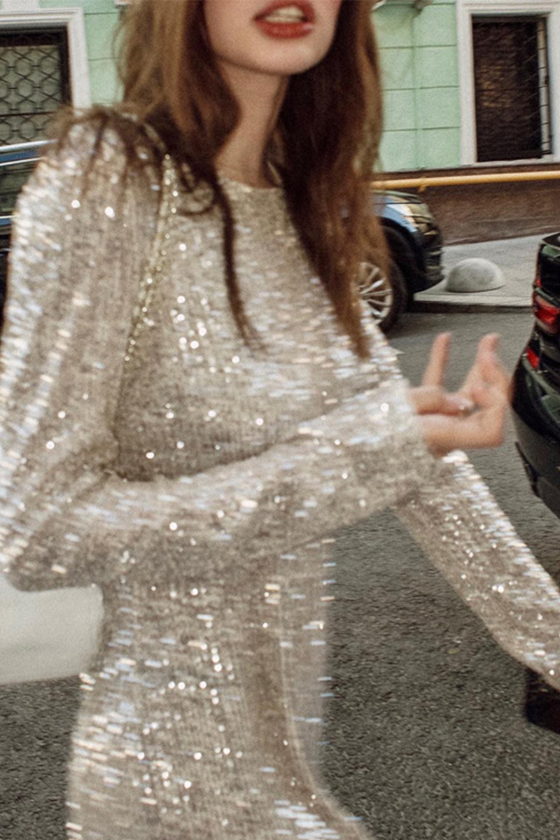 Vestidos sexis de fiesta con lentejuelas sólidas y cuello redondo con falda cruzada