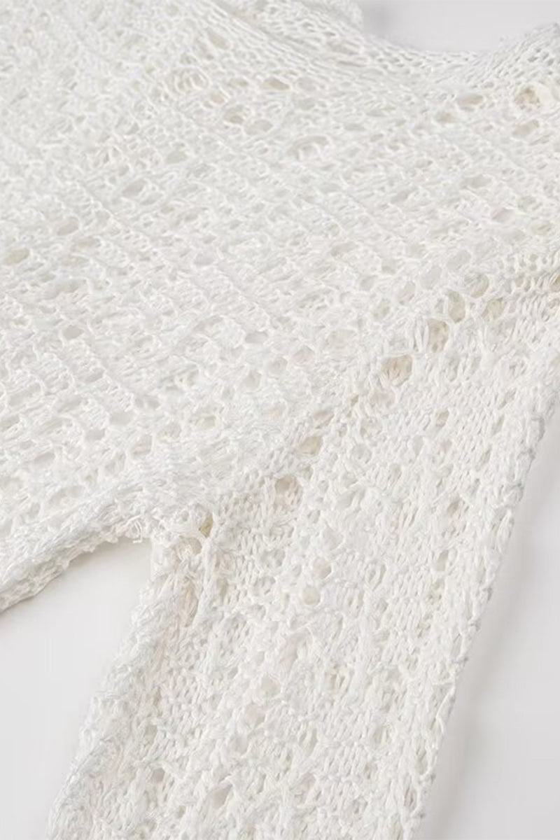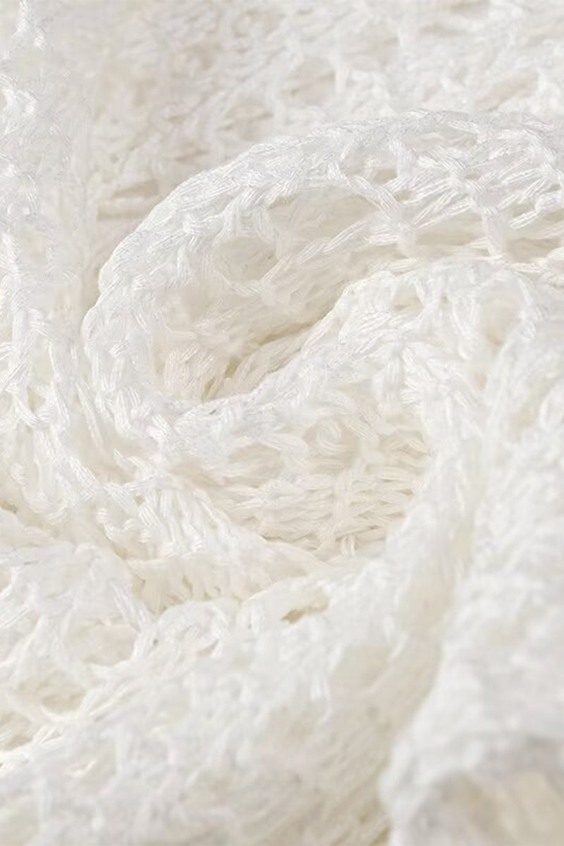 Sexy Solid Color Hollow Out Tassel O Neck One Step Skirt Dresses