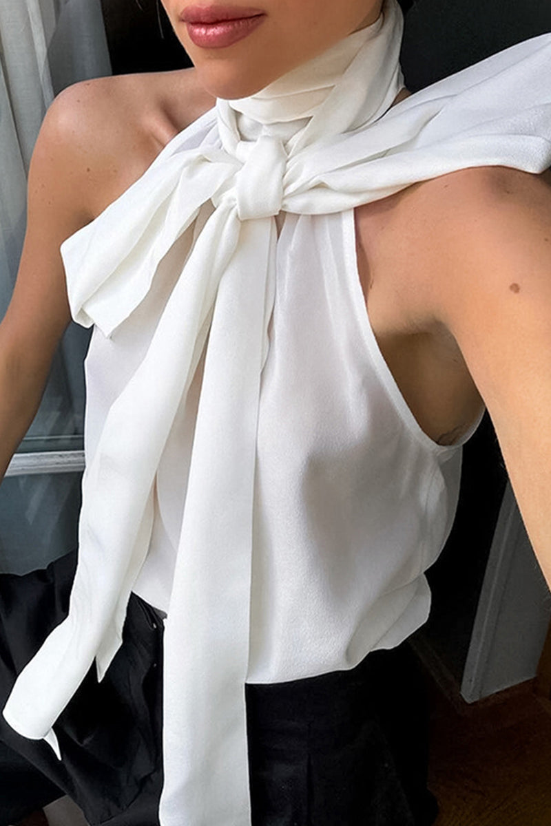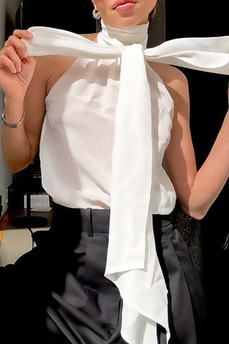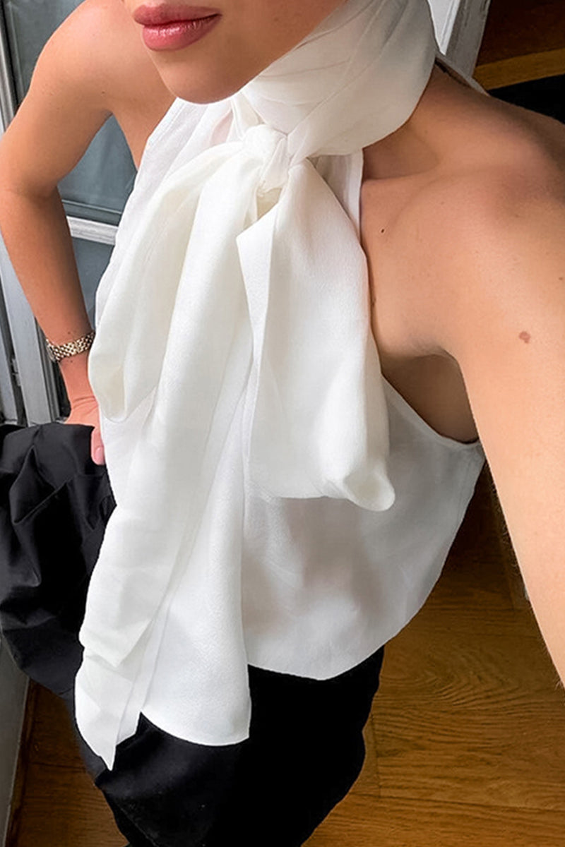 Sexy Solid Color Lace Up Halter Tops