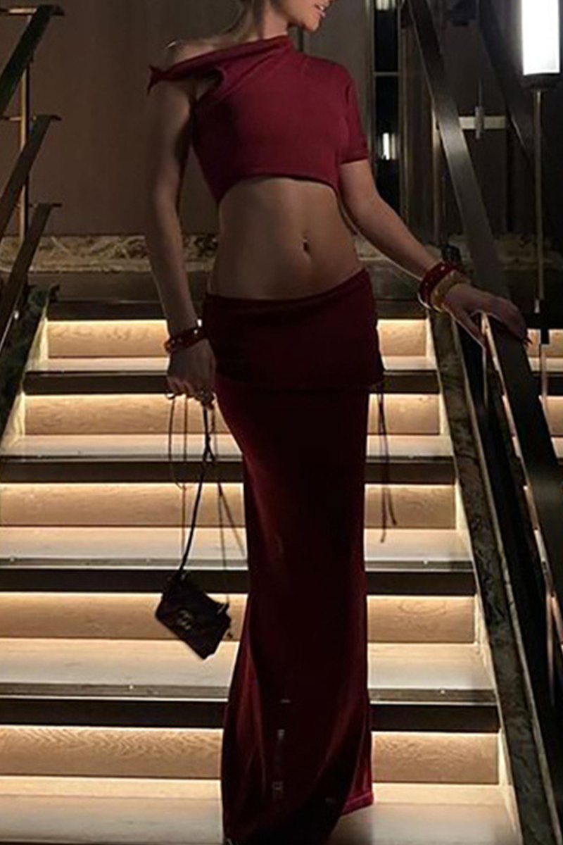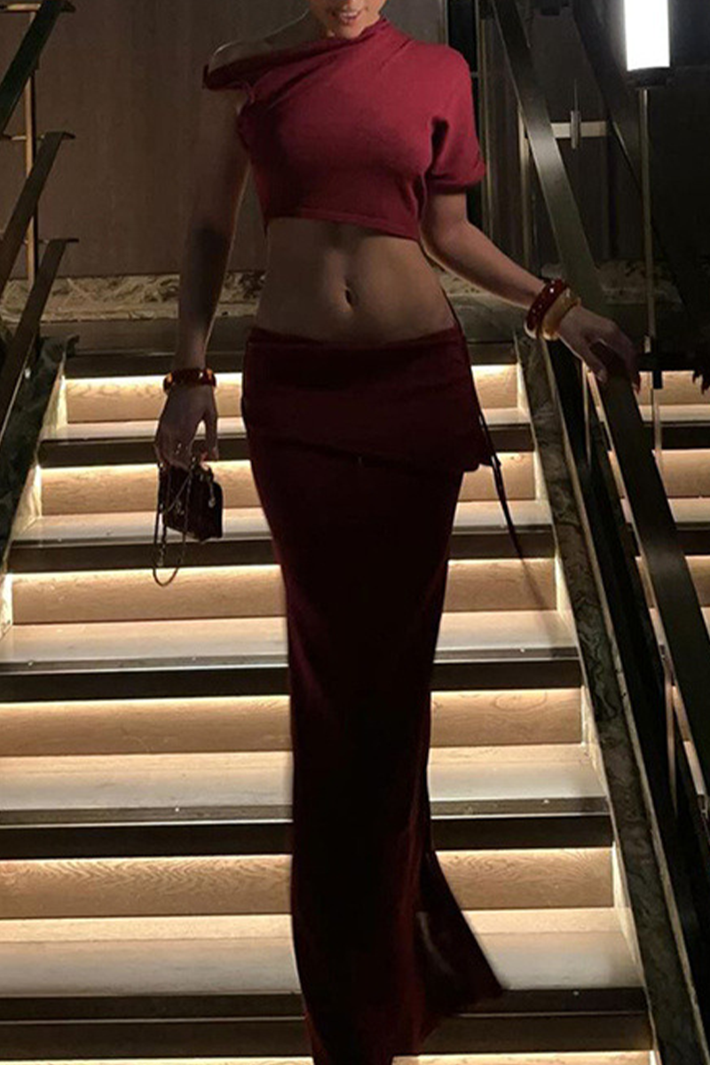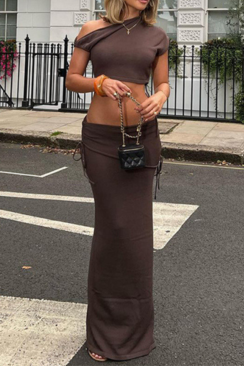 Sexy Street Draw String Irregular Oblique Collar Short Sleeve Two Pieces(3 Colors)