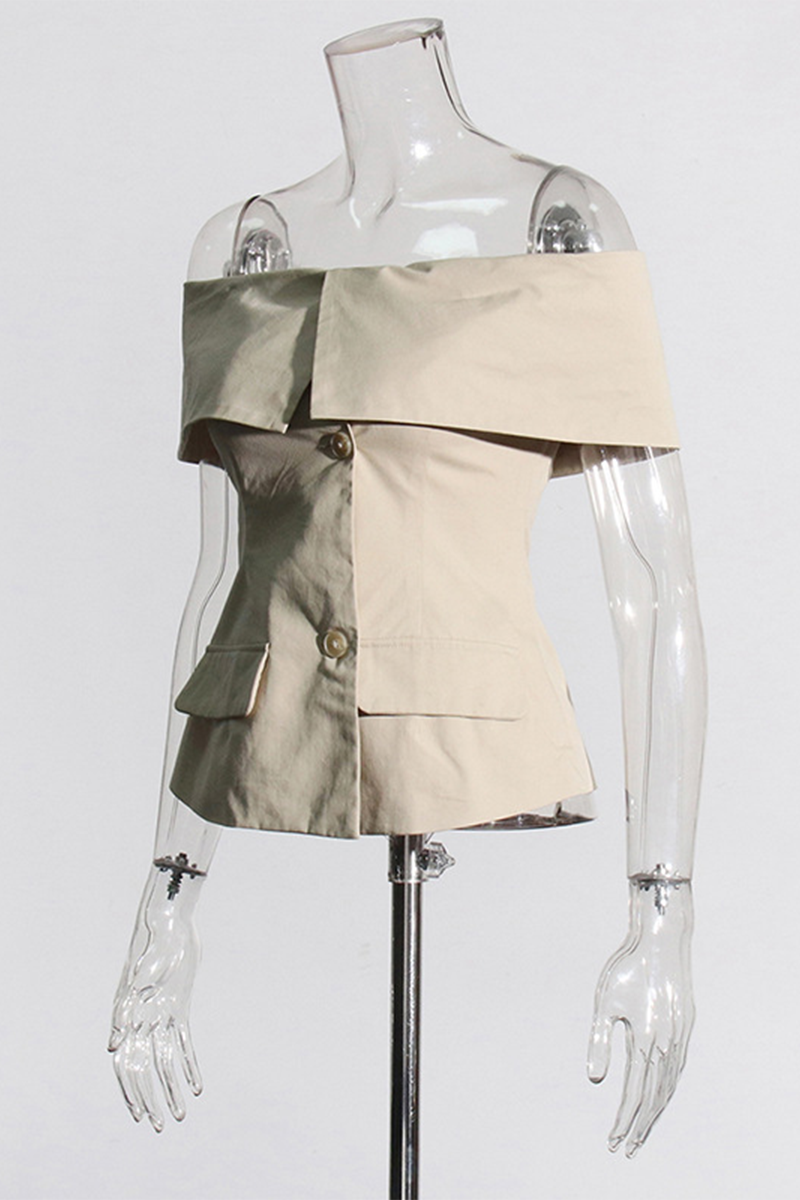 Sexy Street Solid Color Buttons Off Shoulder Blouses