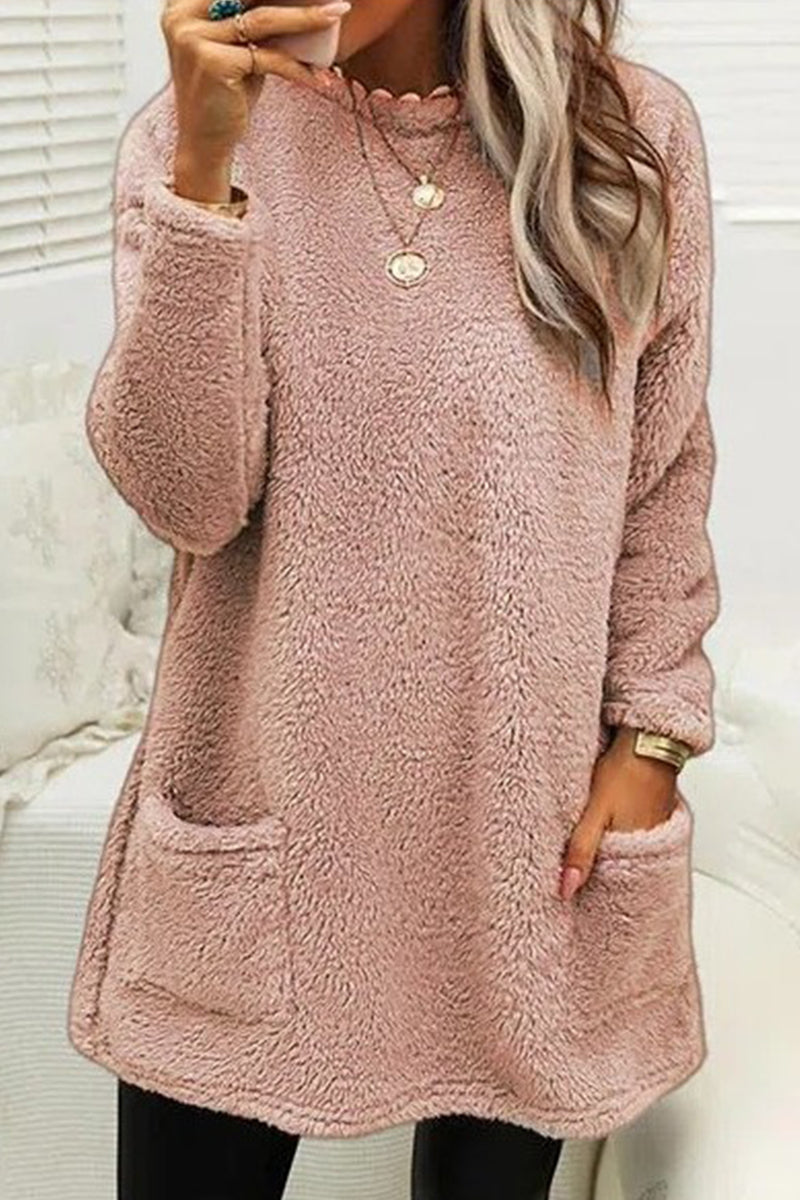 Street Pocket Solid Color O Neck T-Shirts(4 Colors)