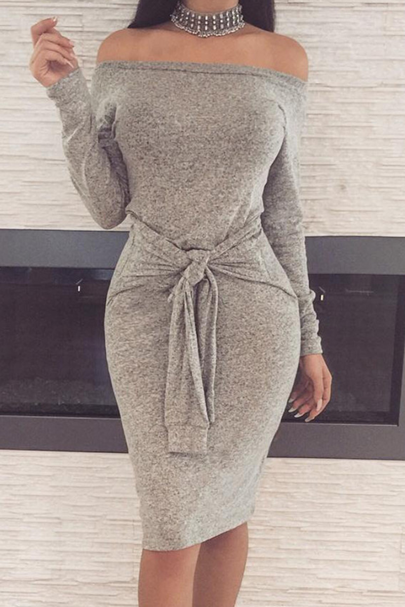 Street Solid Patchwork Off the Shoulder Pencil Skirt Dresses(5 Colors)
