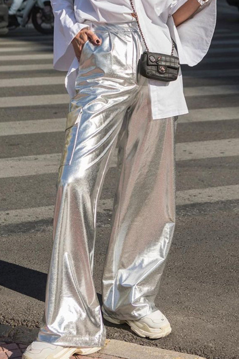 Street Solid Pocket Loose High Waist Wide Leg Solid Color Bottoms