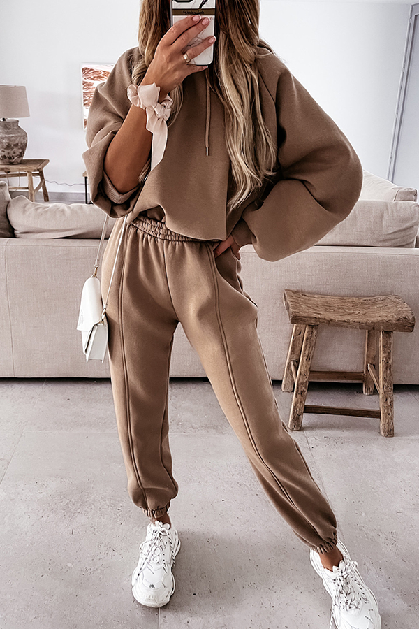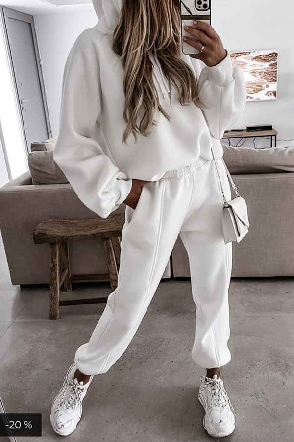 Street Sportswear Solid Patchwork Draw String Hooded Collar Long Sleeve Two Pieces(5 Colors)
