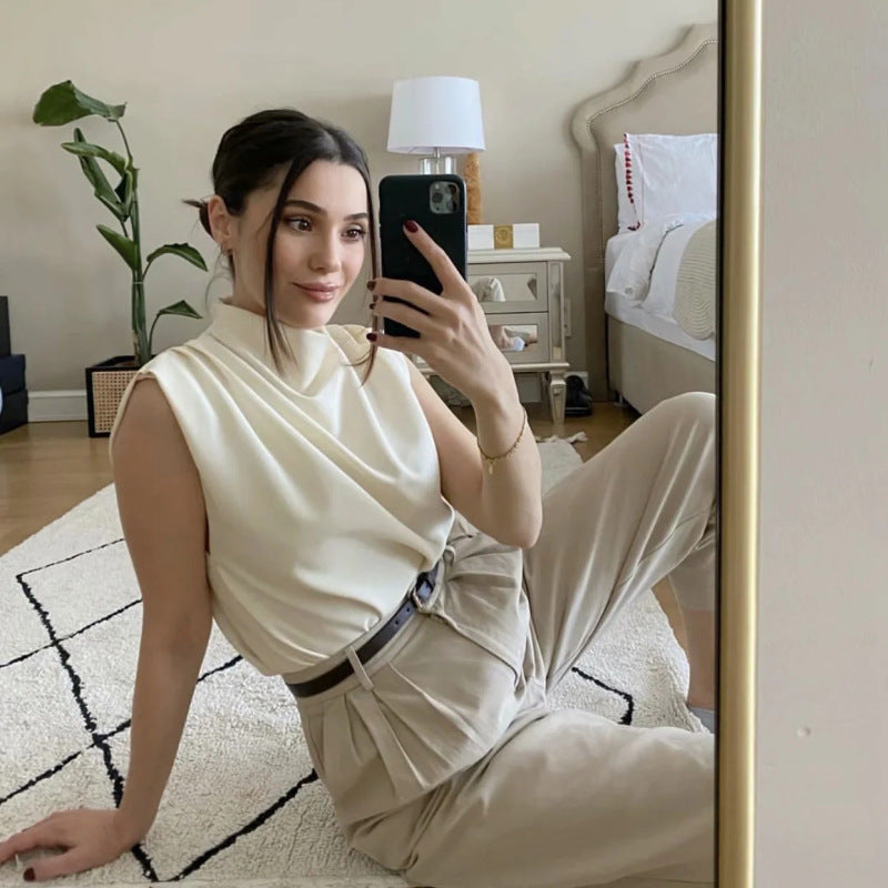 Camisa informal de verano para mujer, sin mangas, con cuello, holgada, de color liso
