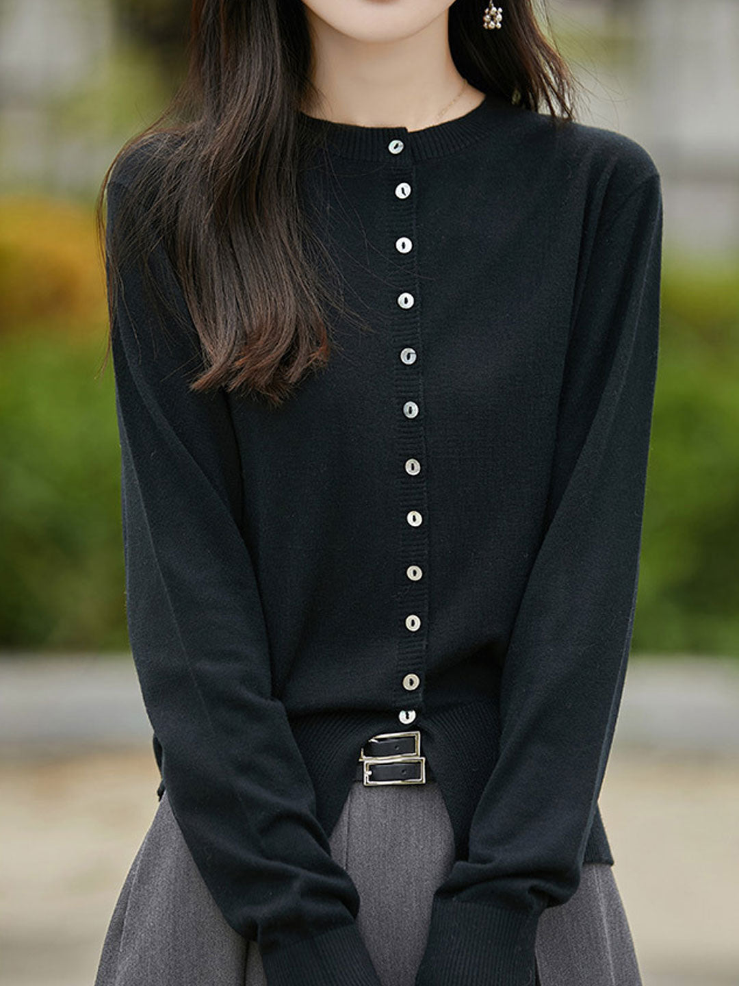 Taylor Classic Crew Neck Solid Color Knitted Cardigan