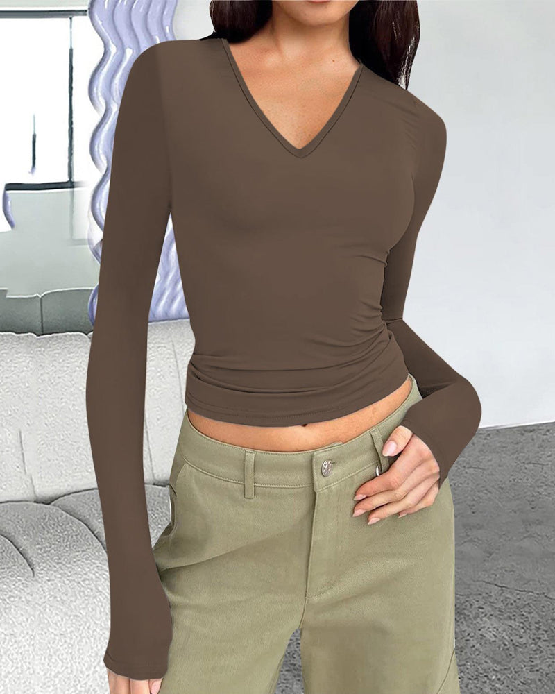 V-Neck Long-Sleeved Slim-Fit Versatile T-Shirt Top