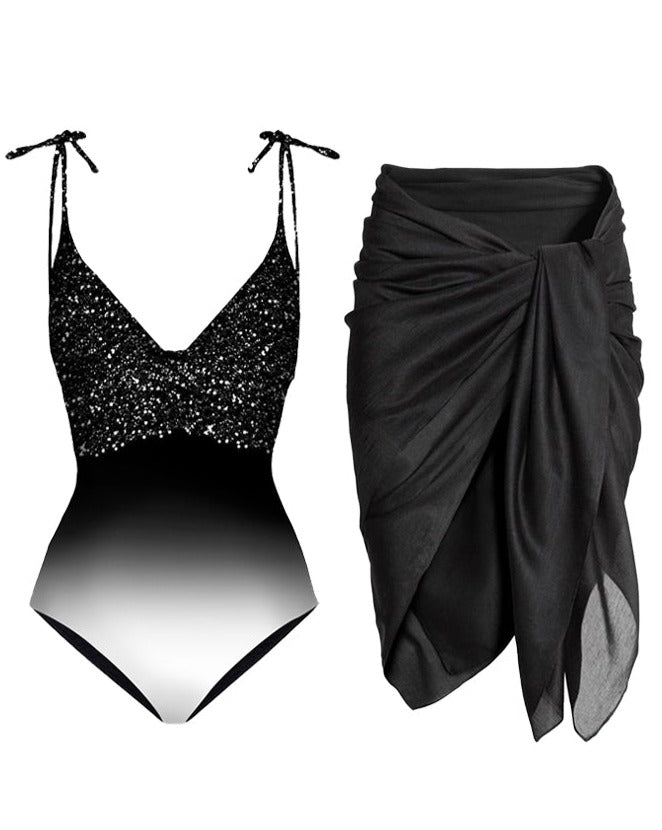 - Classic style: This retro V-neck gradient printed one-piece swimsuit and cover-up combines classic design with fashion elements, showing a unique retro charm. The V-neck design can show off the beautiful neck line and add feminine charm.