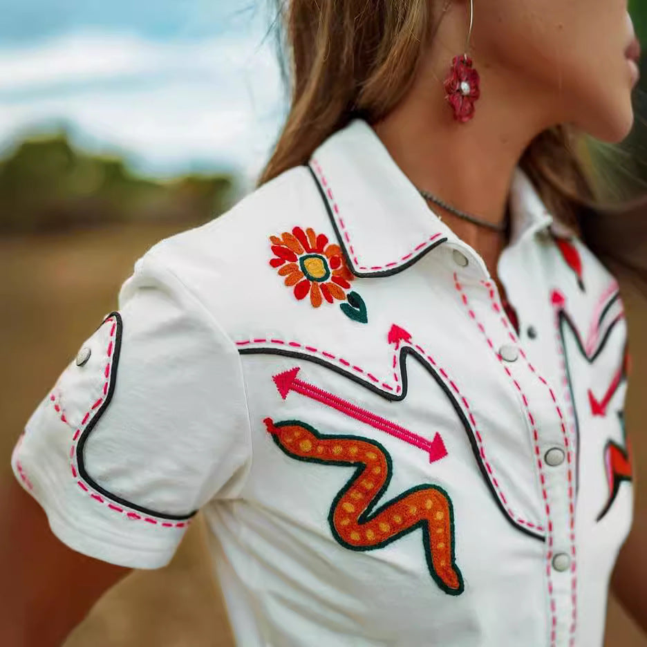 Camisa casual de manga corta estilo occidental vintage para mujer
