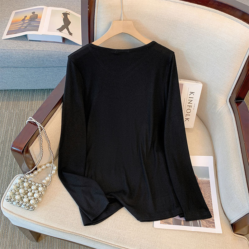 Camiseta básica informal holgada de talla grande con hombros descubiertos y manga larga de color liso para mujer