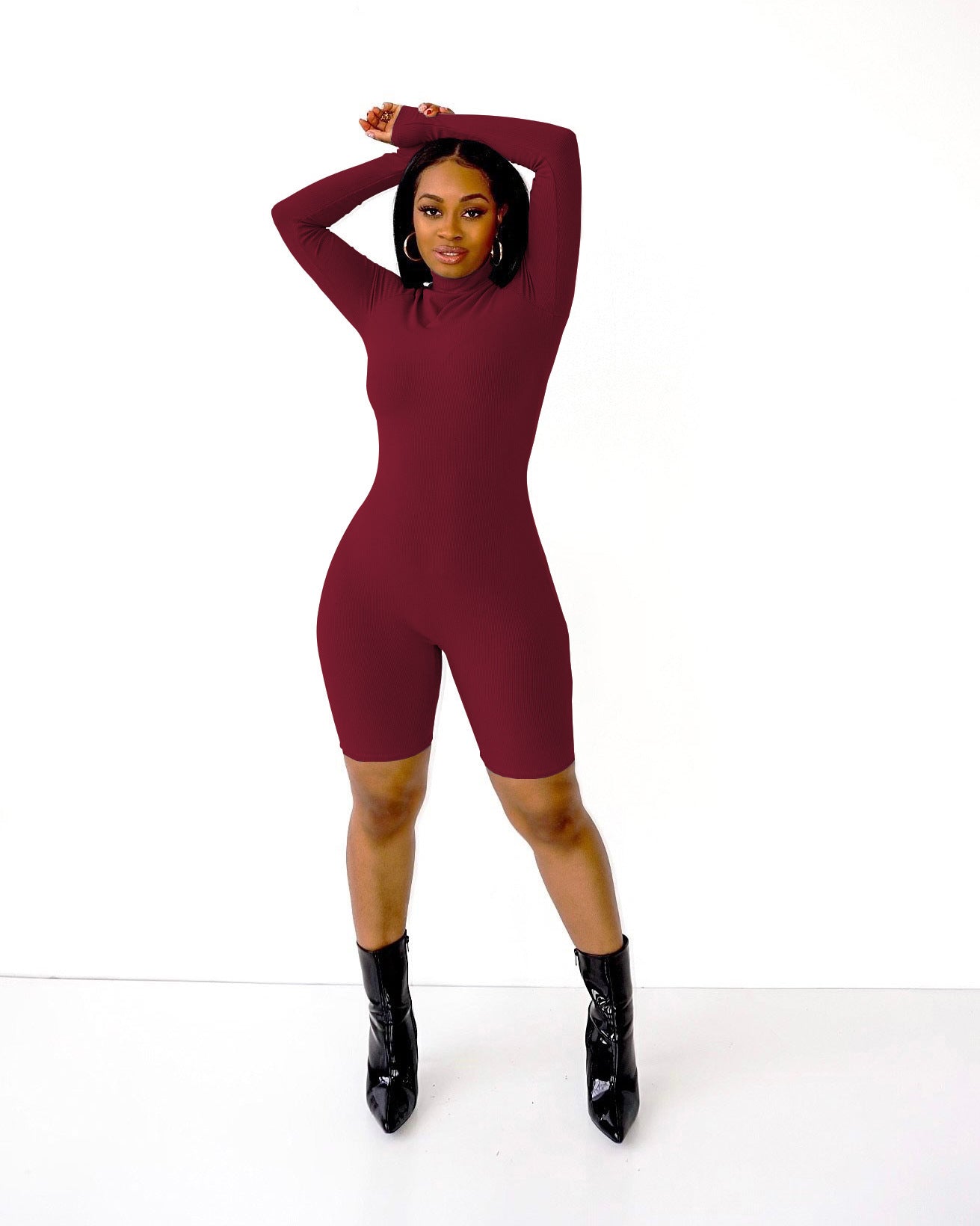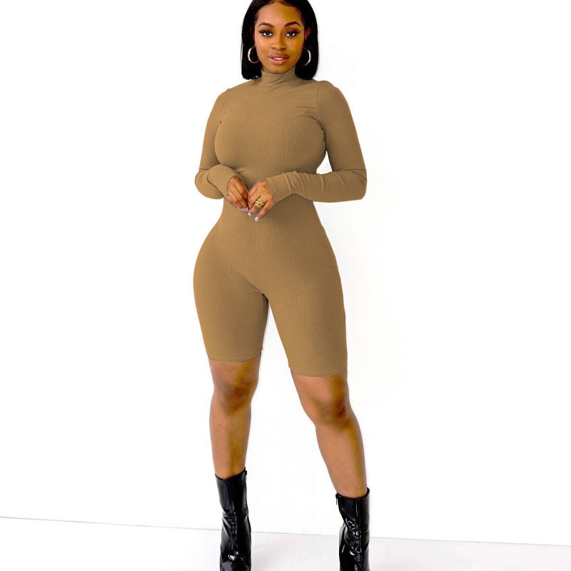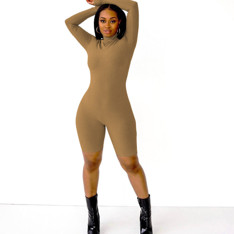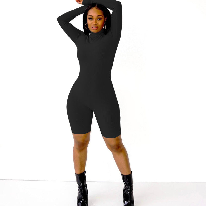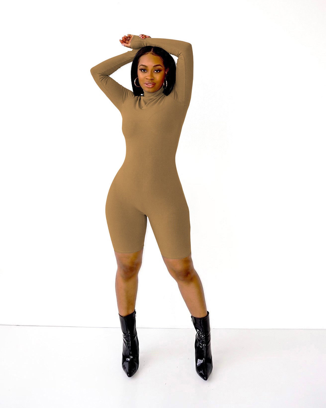 Mono informal de manga larga con cremallera y tiras en los lados de color liso para mujer