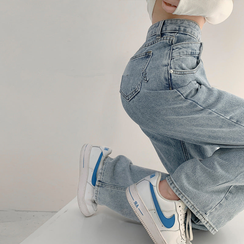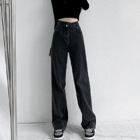 Vaqueros casuales de pierna ancha de color liso para mujer