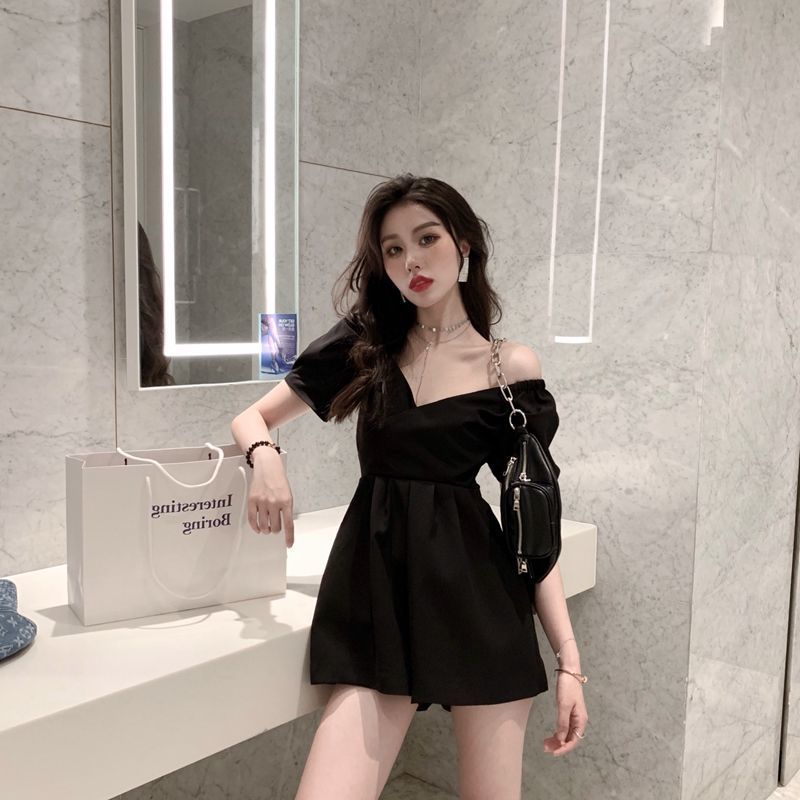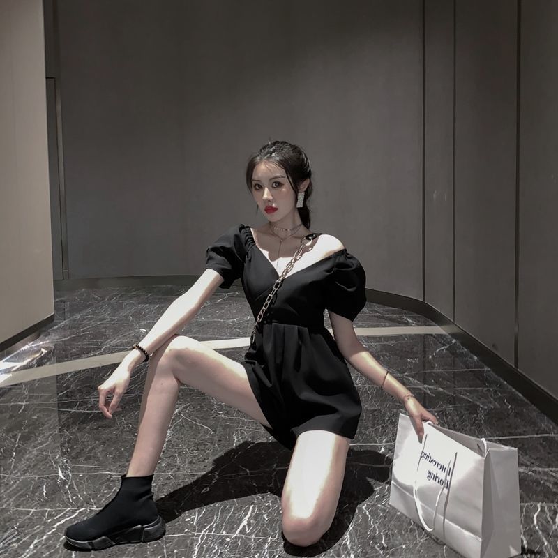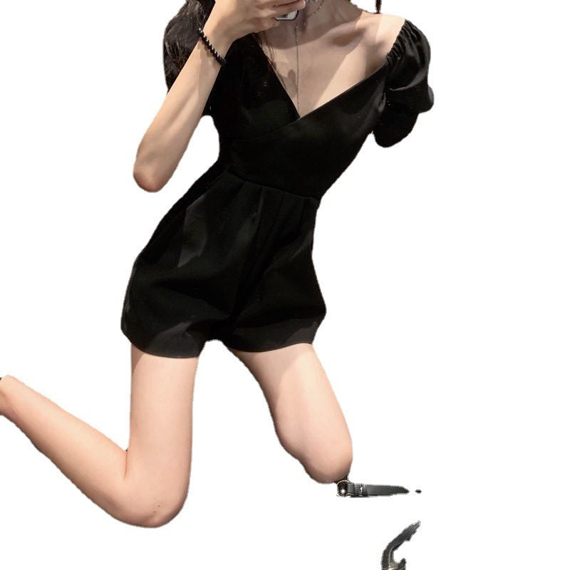 Mono informal de gasa con mangas farol y cuello en V para mujer