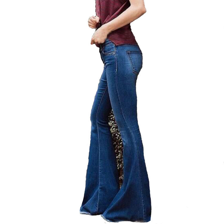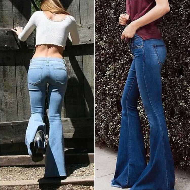 Vaqueros acampanados ajustados informales de cintura alta para mujer