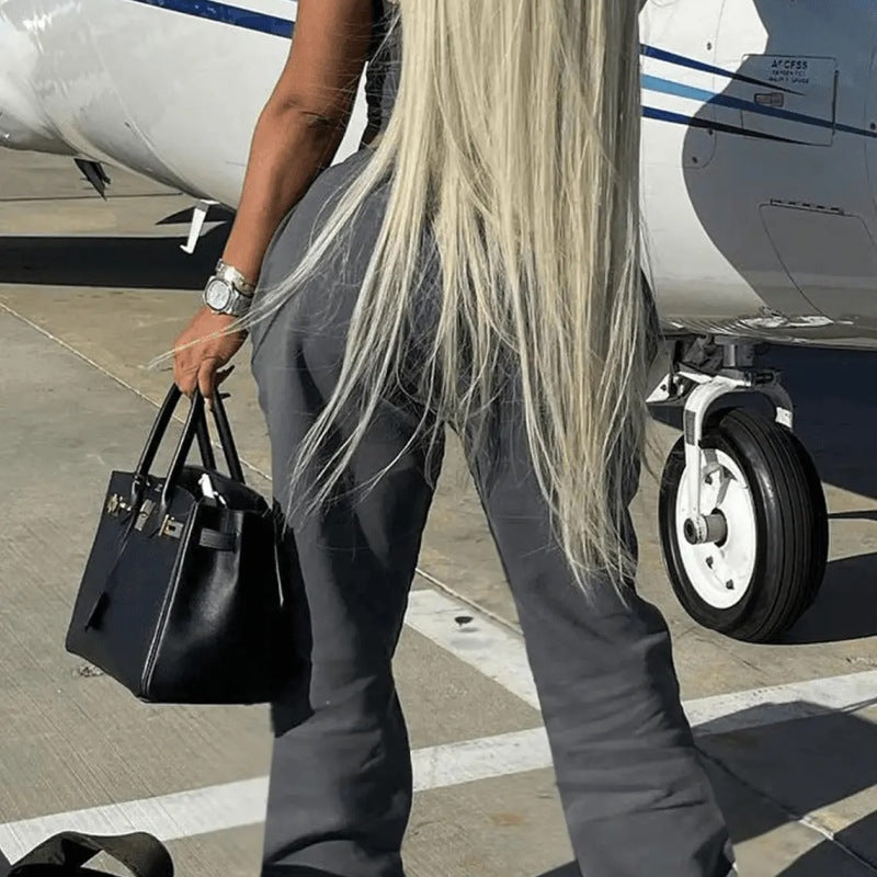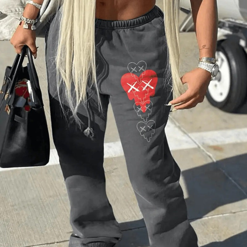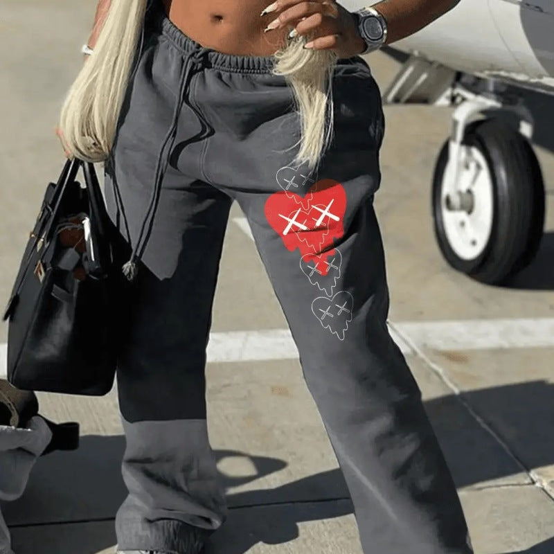 Vaqueros casuales holgados con cintura ajustada y estampado de mezclilla para mujer