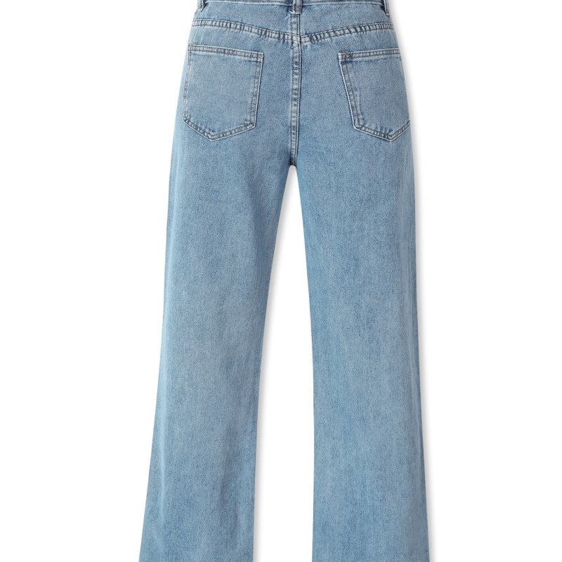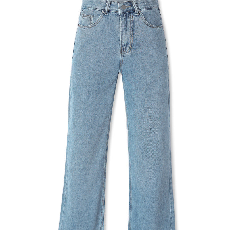 Vaqueros rectos holgados informales de cintura alta de color liso para mujer