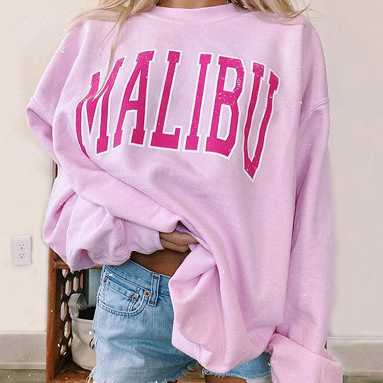 Sudadera informal de manga larga con estampado de letras y nombre de ciudad para mujer