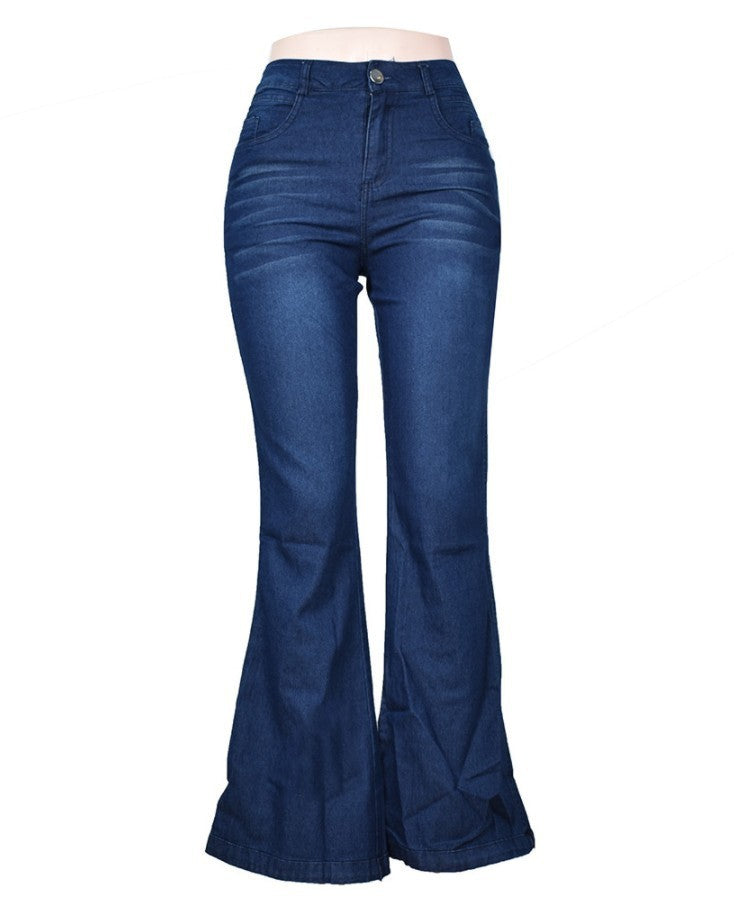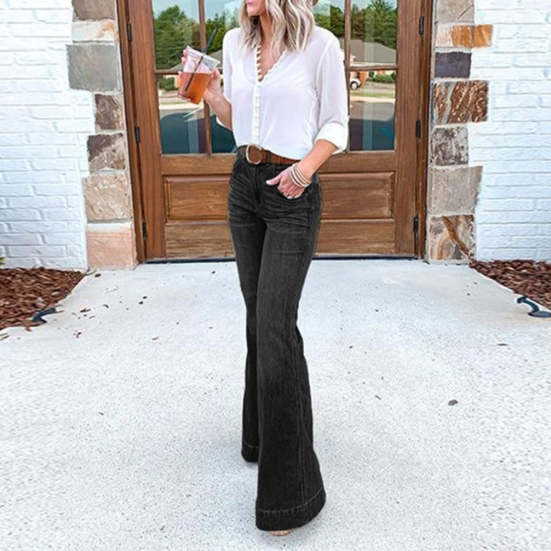 Vaqueros acampanados de cintura alta informales a la moda para mujer