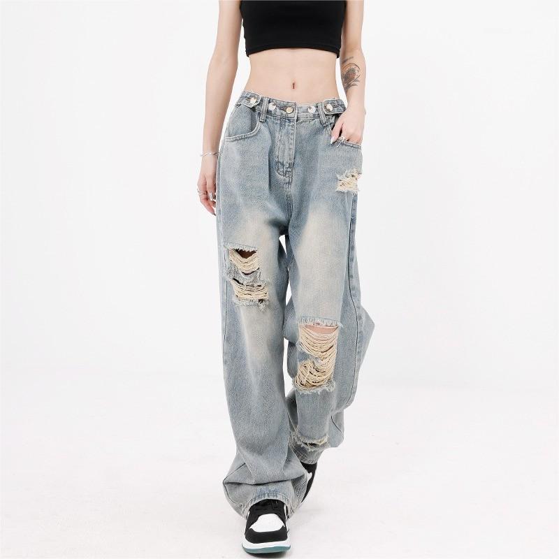 Vaqueros rotos sueltos con degradado informal a la moda para mujer