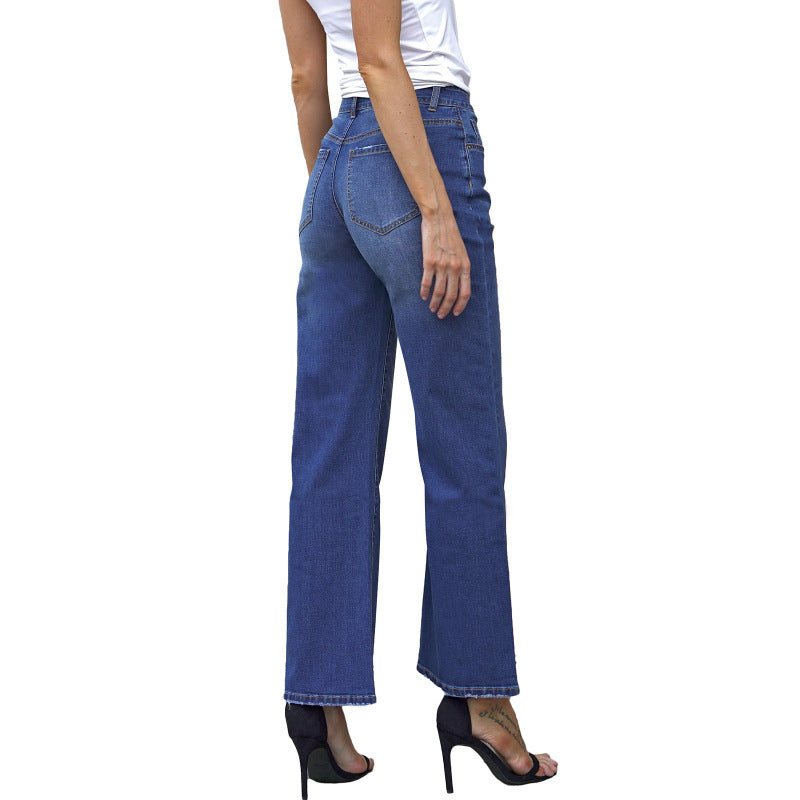 Vaqueros elásticos de cintura alta holgados e informales a la moda para mujer