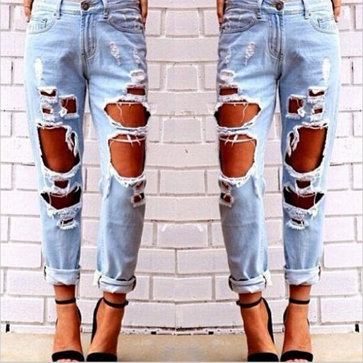 Vaqueros rectos de mezclilla rotos y sueltos informales a la moda para mujer