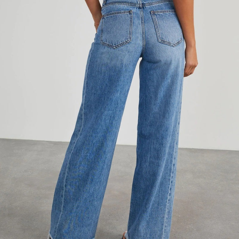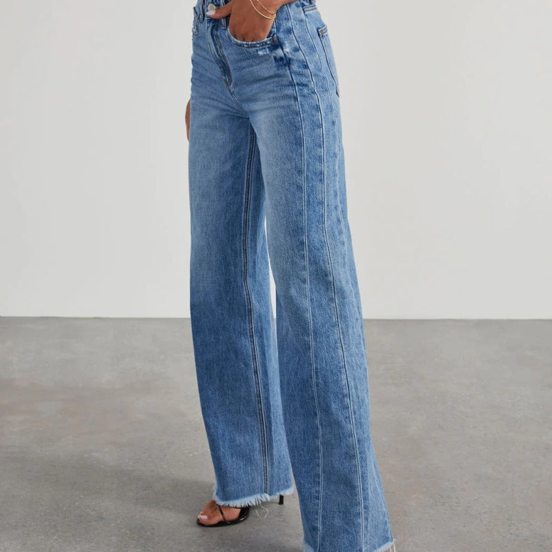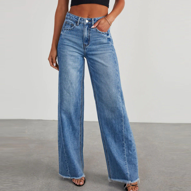 Vaqueros de pierna ancha con costuras sueltas y casuales a la moda para mujer