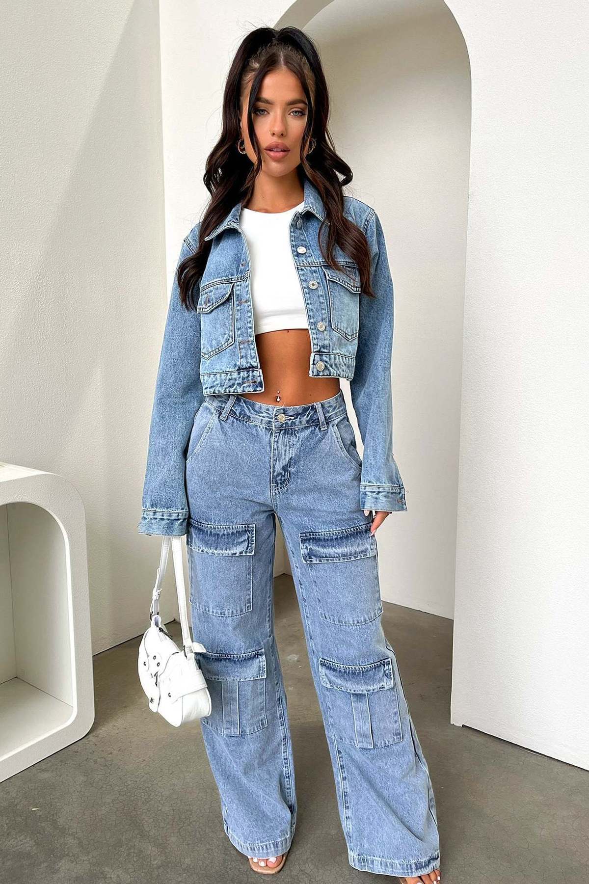 Vaqueros de pierna ancha con múltiples bolsillos informales a la moda para mujer