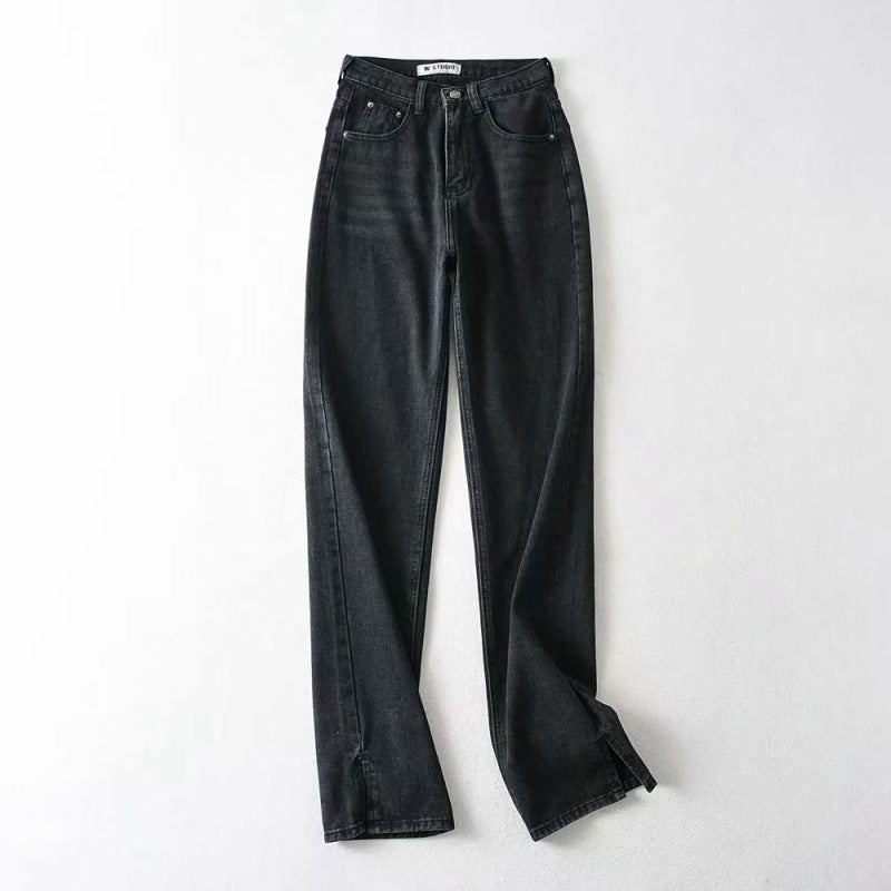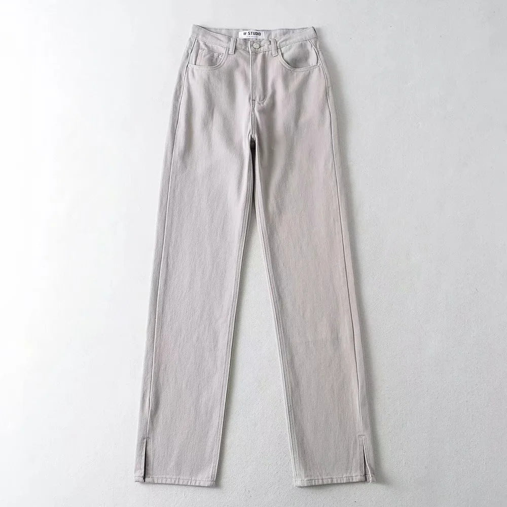 Vaqueros de mezclilla con cintura definida y abertura frontal de color sólido a la moda para mujer