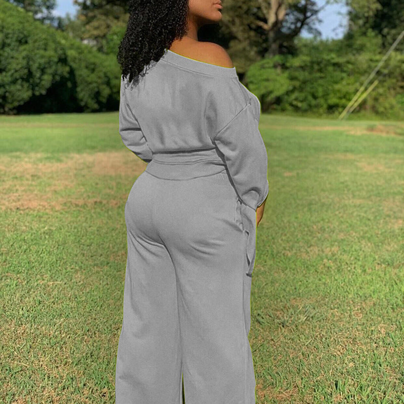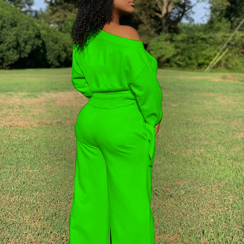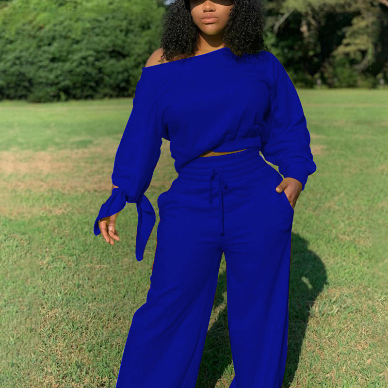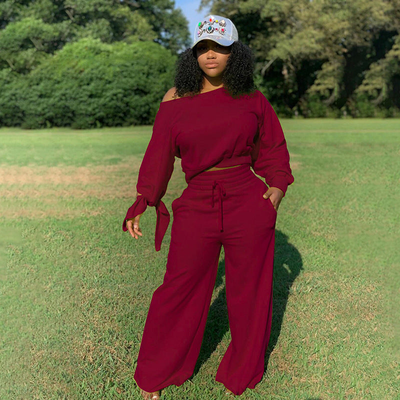 Conjunto de sudadera y pantalones de manga larga de color liso informal a la moda para mujer