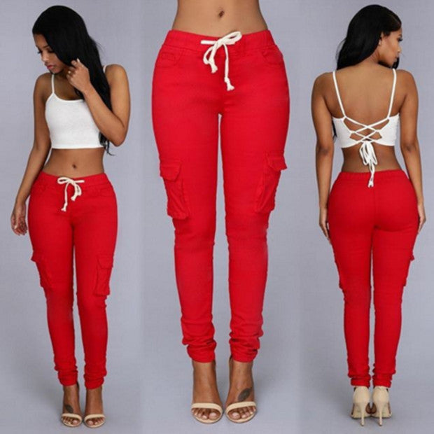 Vaqueros ajustados de color liso informales a la moda para mujer