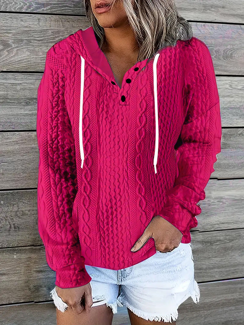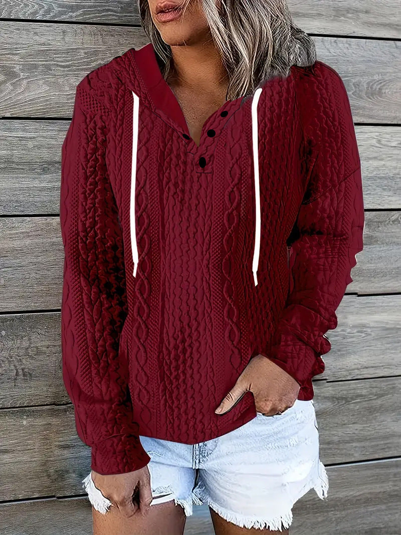 Sudadera de punto jacquard de manga larga con cordón y cuello en V informal a la moda para mujer