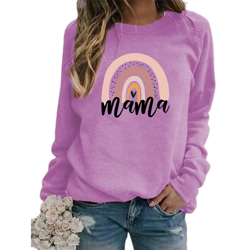 Sudadera holgada informal con estampado de letras arcoíris y cuello redondo de manga larga para mujer