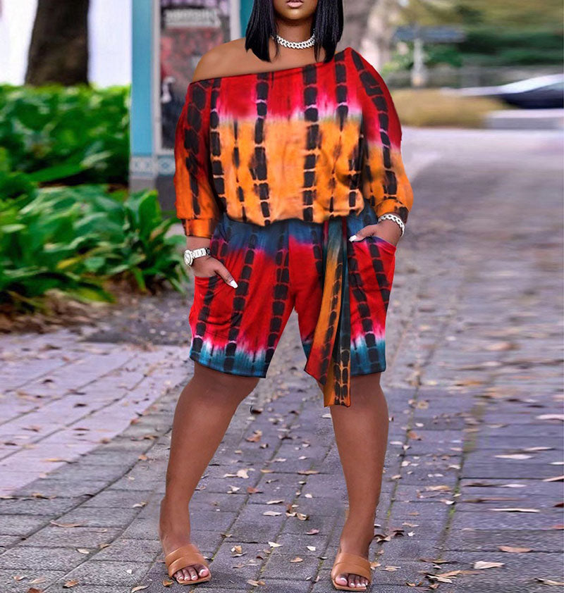 Mono holgado de manga larga con un solo hombro y dos bolsillos para mujer, sencillo e informal, con estampado gráfico