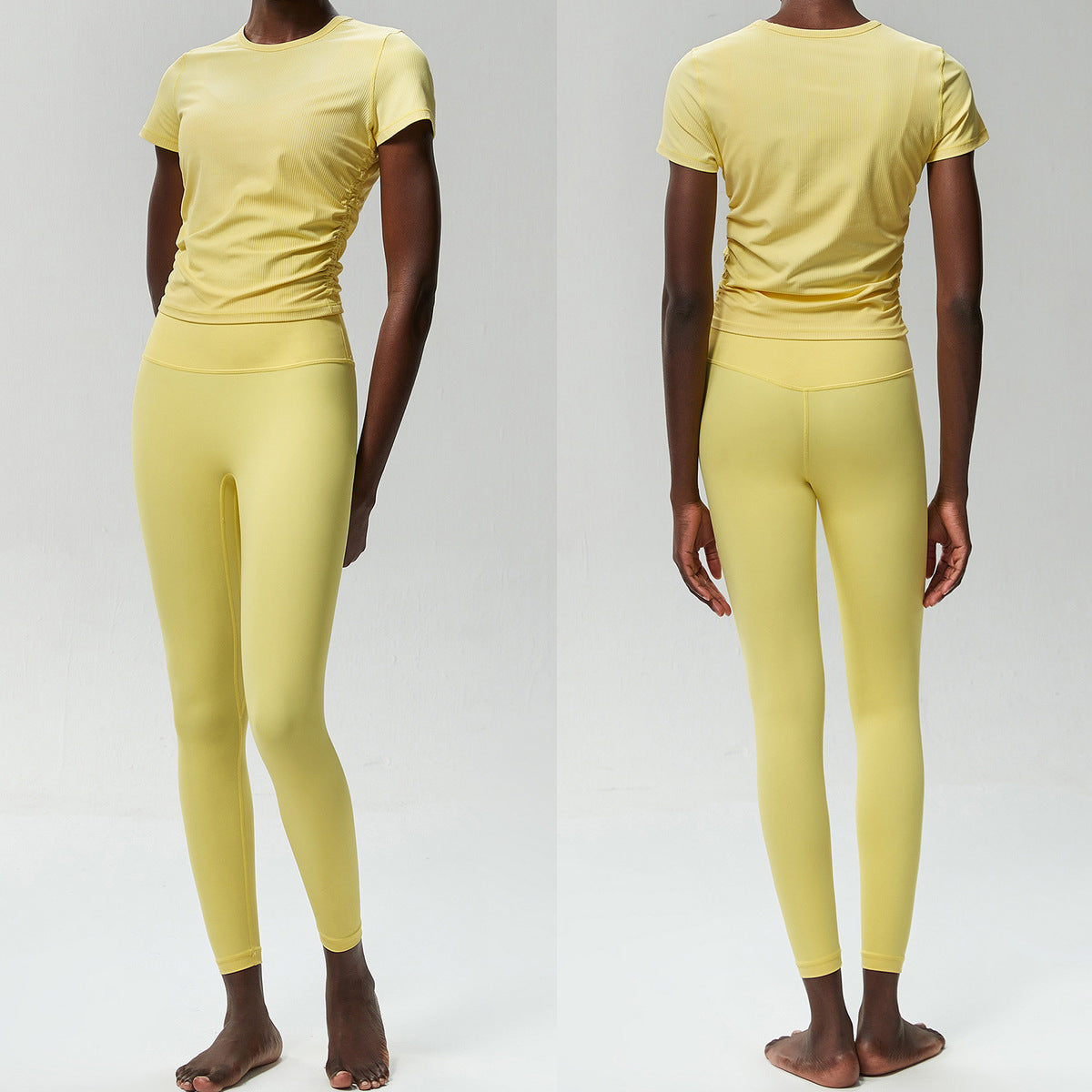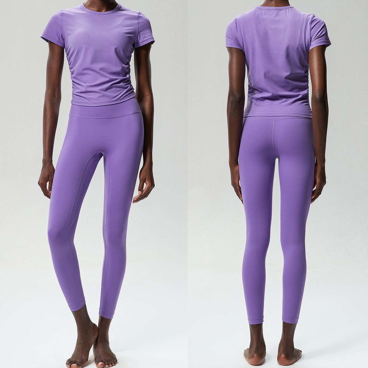 Conjunto de dos piezas para mujer, camiseta de manga corta con cuello redondo, pantalones deportivos ajustados para correr