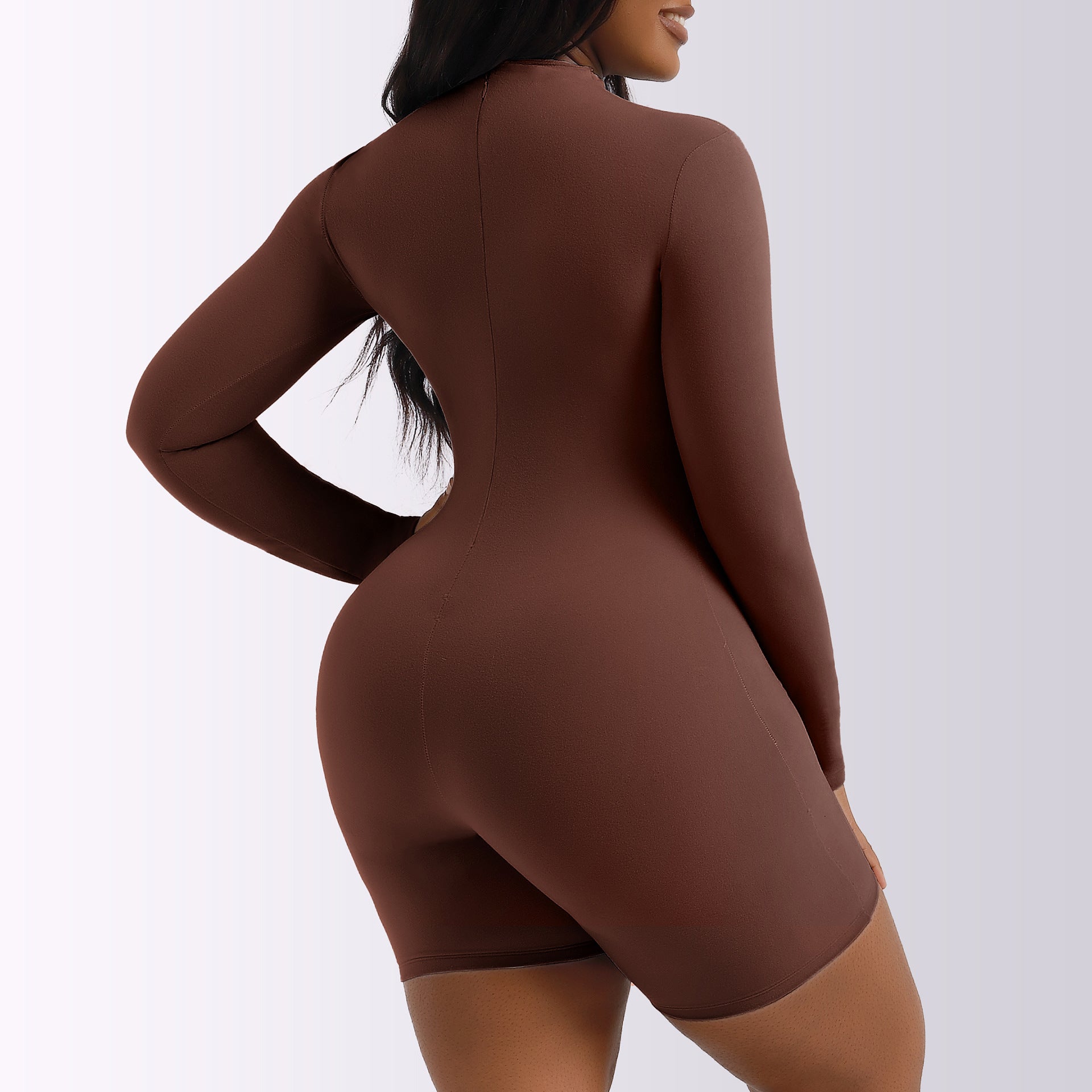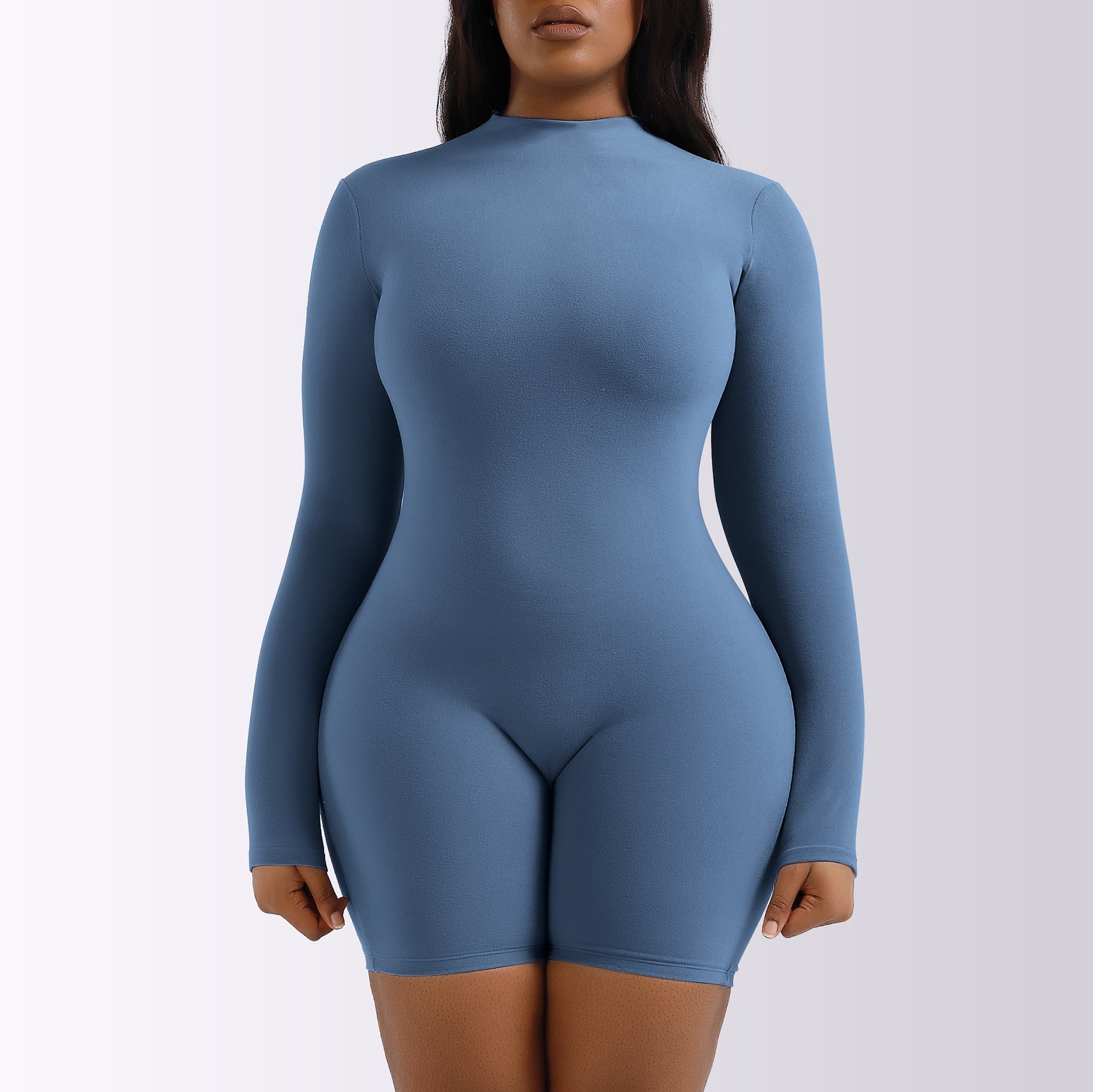 Mono informal de color liso con manga larga, cuello redondo y cintura sencilla para mujer