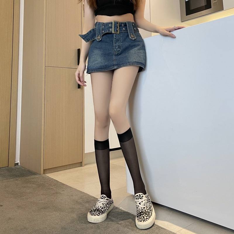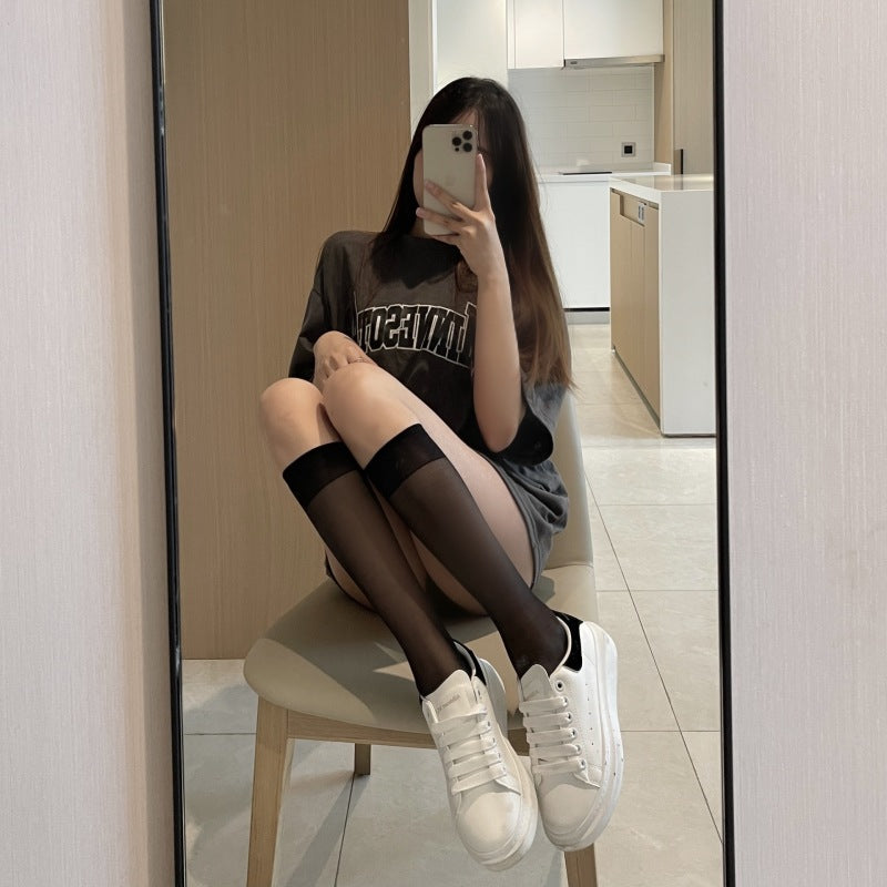 Medias de tubo transparentes JK de color liso para mujer, informales y a la moda