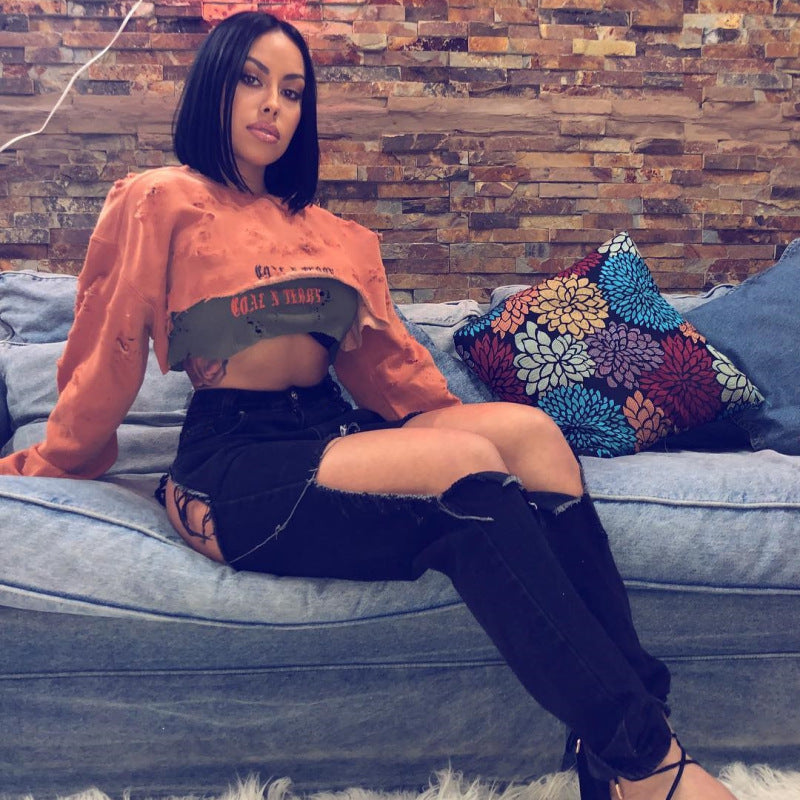 Vaqueros ajustados rotos con borlas informales de moda para mujer