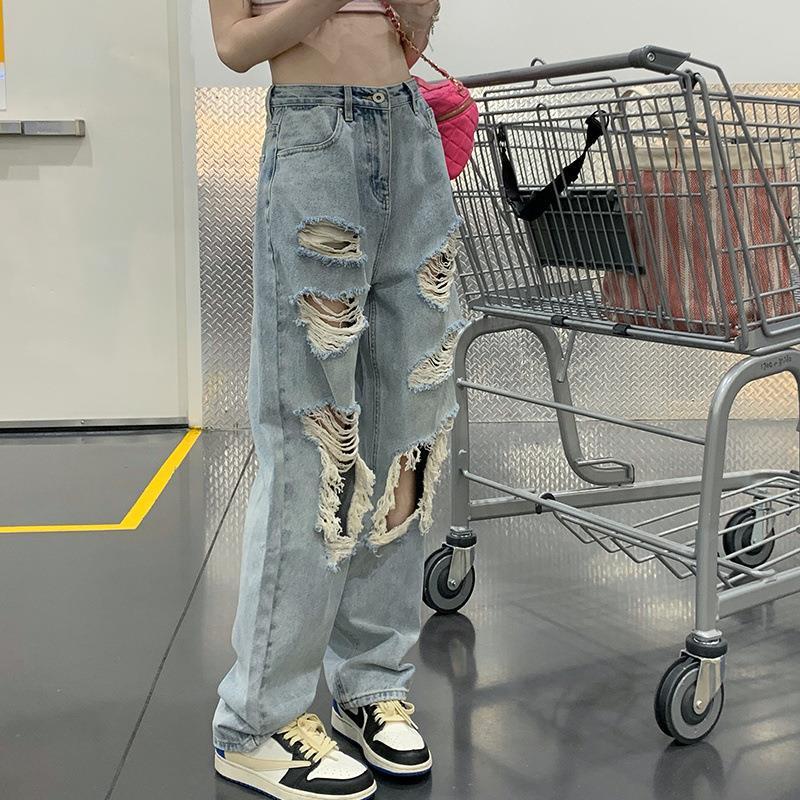 Vaqueros rectos, rotos, holgados e informales de cintura alta para mujer