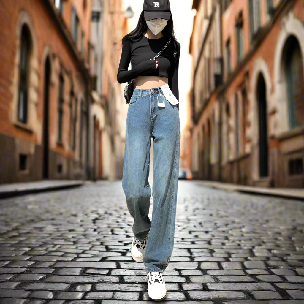 ¿Estás lista para usar nuestros jeans de cintura alta y pierna ancha de moda para mujer?
